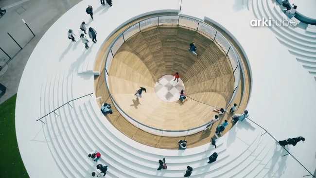 Made of perforated stainless steel reflecting on a geodesic structure, the installation plays with the light that passes through it and is reflected in it at the same time. The effect, infinite and deep, creates a captivating vibration