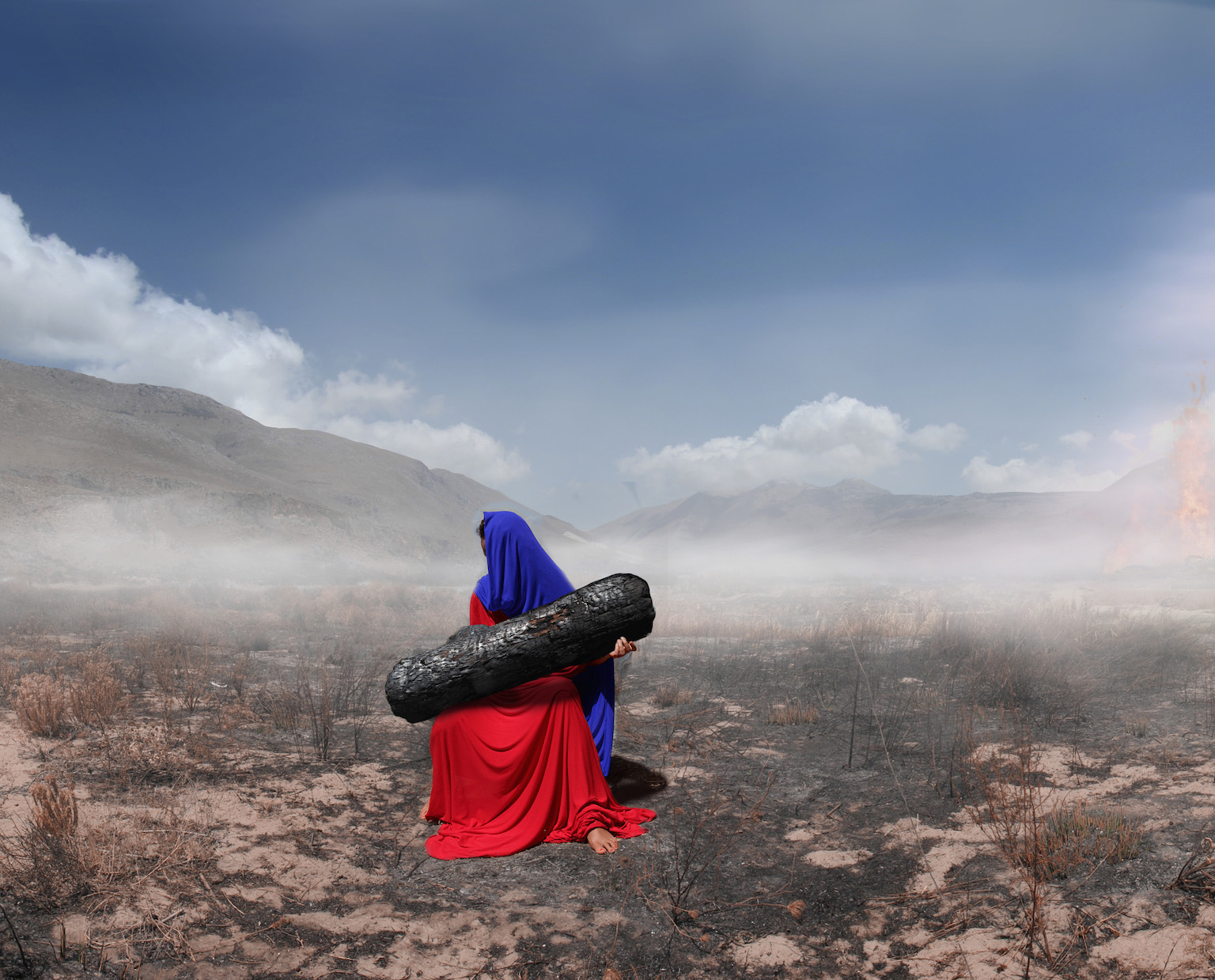 Through photography, painting and installation, she portrays performances that she sets up as a stage theatre. Her narration follows a fine thread, the hidden or implicit meaning that the viewer can discover between the semantics of her images, an art that sometimes requires a reading of the symbols, gestures and expressions of female faces and bodies, which dwell in landscapes that she describes as modern 'capricious'