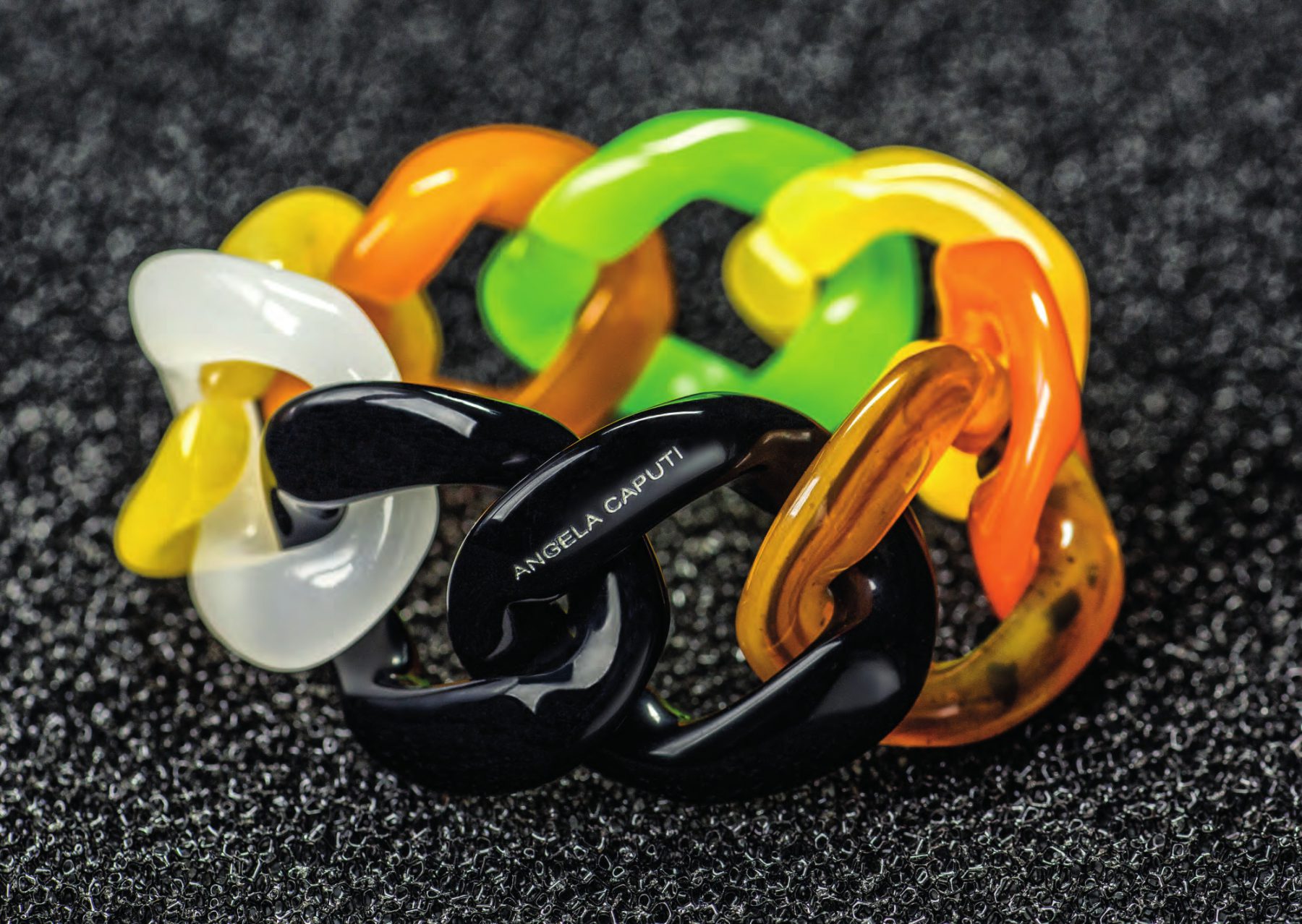 The creative heart of the brand Angela Caputi Giuggiù is located in the historic center of Florence, just a stone's throw from the Ponte Vecchio, in an ancient seventeenth-century building better known as the "Palazzetto Medici." Every detail of its jewelry is particularly refined, from the geometric but soft lines, to the thousand shades of colors, to the "simple" materials like plastic resins