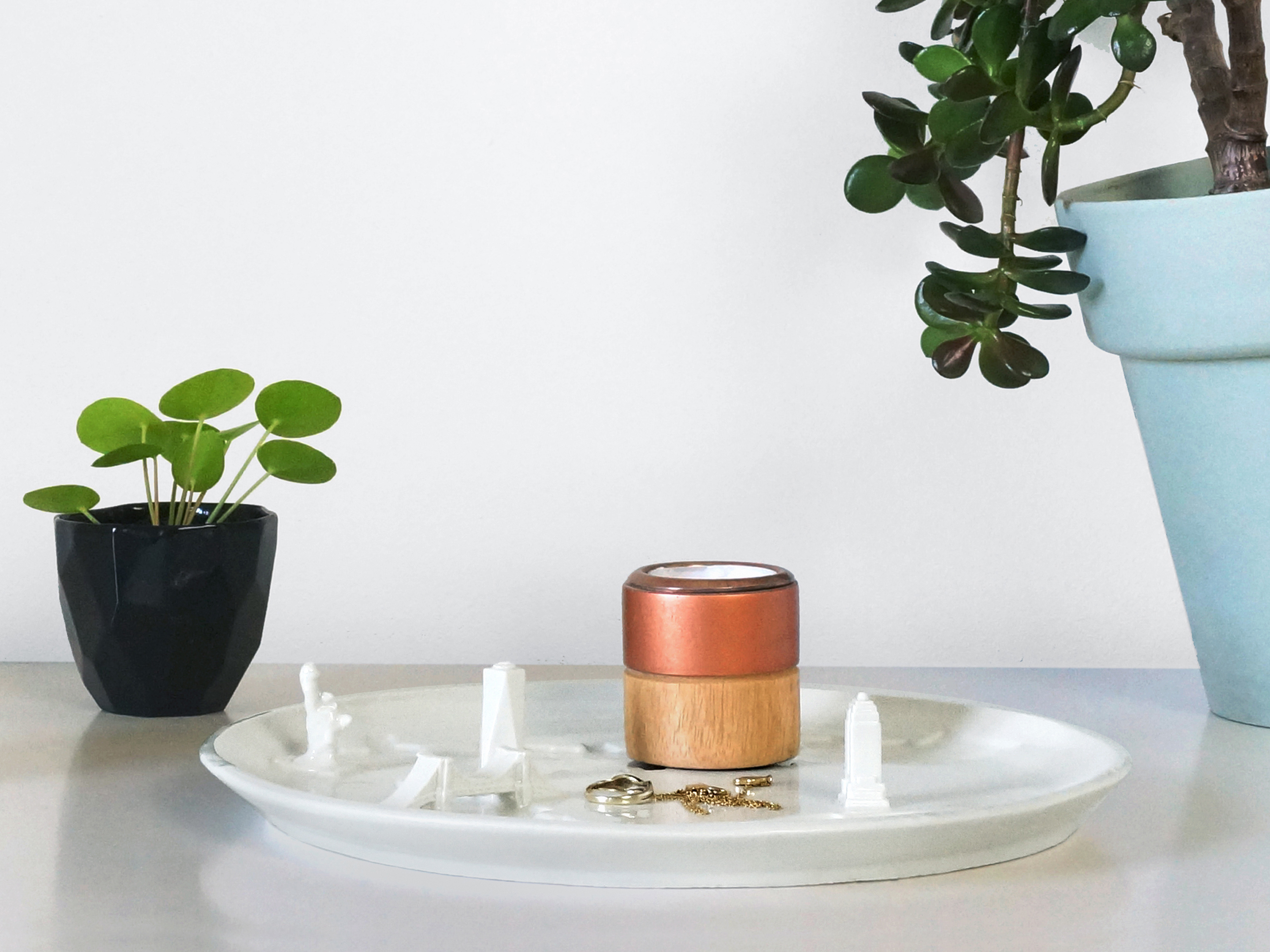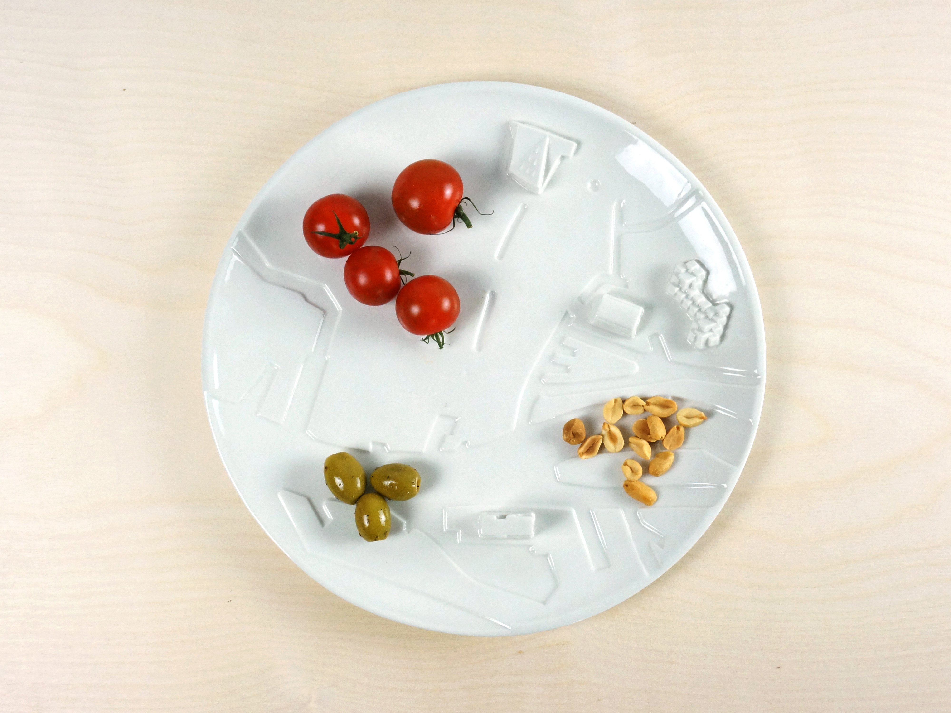 This project was created to give a "plaque" to the cities. It is a porcelain plate that has been shaped in the texture that represents well known cities and contains the main architectural monuments. These trays can be used to present food, store objects or simply for decoration.