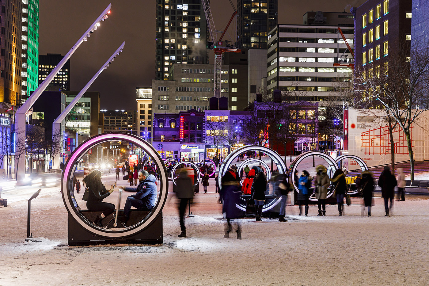 The non-profit organization Quartier des Spectacles is proposing a series of public art installations and cultural activities anchored in Place des Festivals, in downtown Montreal, to combat the impacts of covid on the territory and revive the city's economy
