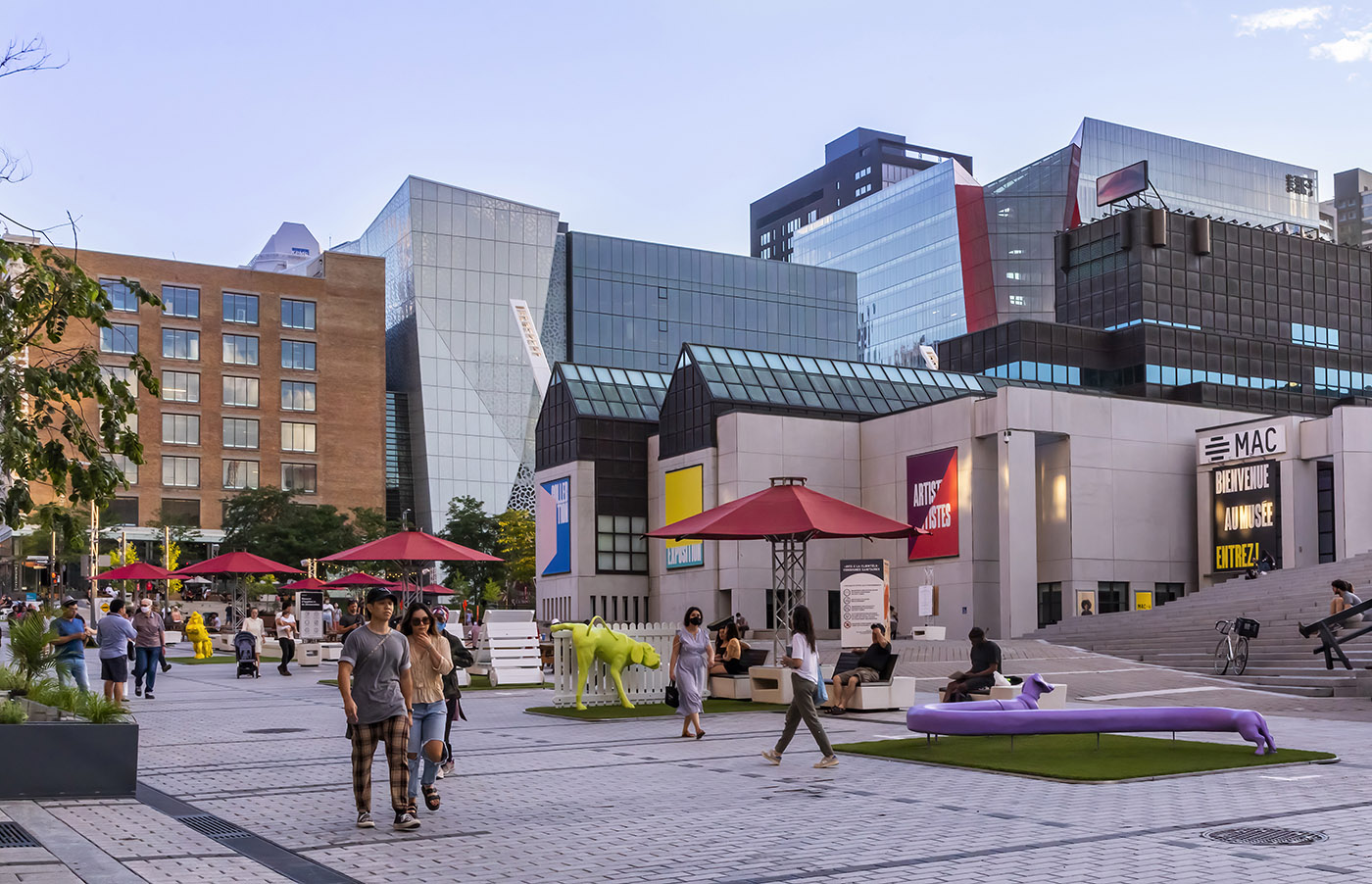 The Quartier des Spectacles Partnership set out to bring people back to the streets after the closure of much of the city in a safe, healthy and engaging way, through special performances, the creation of new public spaces, animated pedestrian zones, exhibitions and art installations