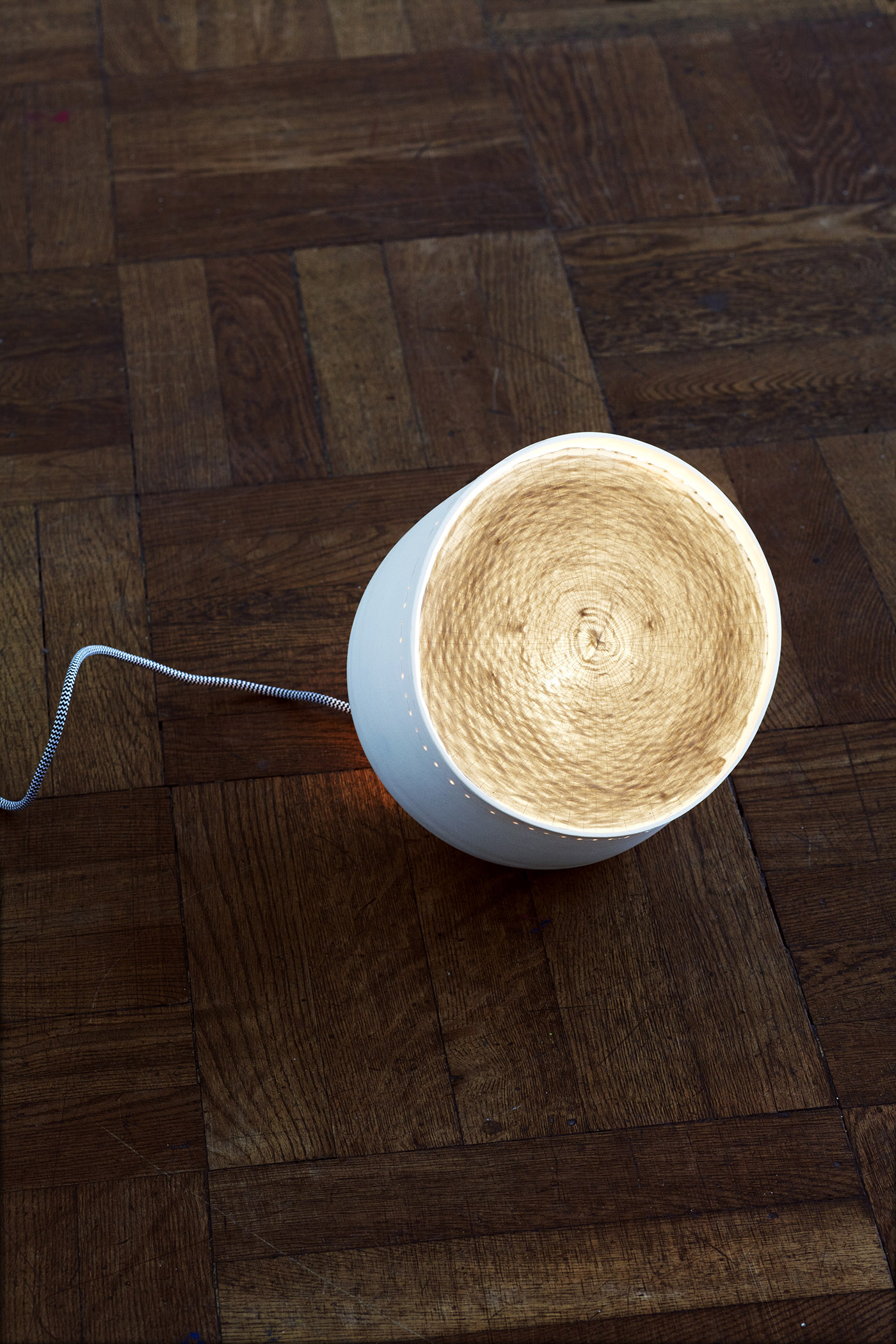 Designed by young designer Marie Schumann, the Colum lamp can be used as a floor or table lamp. Marie Schumann is a textile designer who lives and works in Zurich, Switzerland. She studied in Hamburg and at Lucerne University of Applied Sciences and Arts (MA) where she worked for two years in the textile design research group