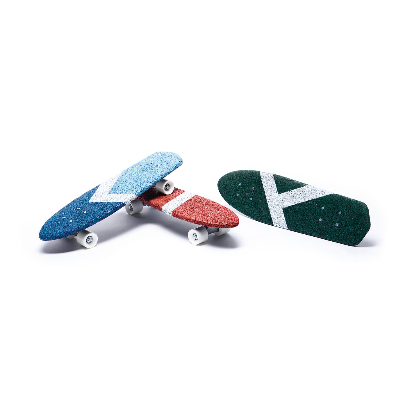 Fragment is a collection of skateboards made of rubber from End-of-Life Tyres (ELT). Through the shredding processes, the rubber of the tyre is transformed into economical granules that maintain all the technical properties of the rubber such as grip, strength and elasticity. End-of-Life tyres come to life in the form of a skateboard, giving you a second chance to keep on travelling