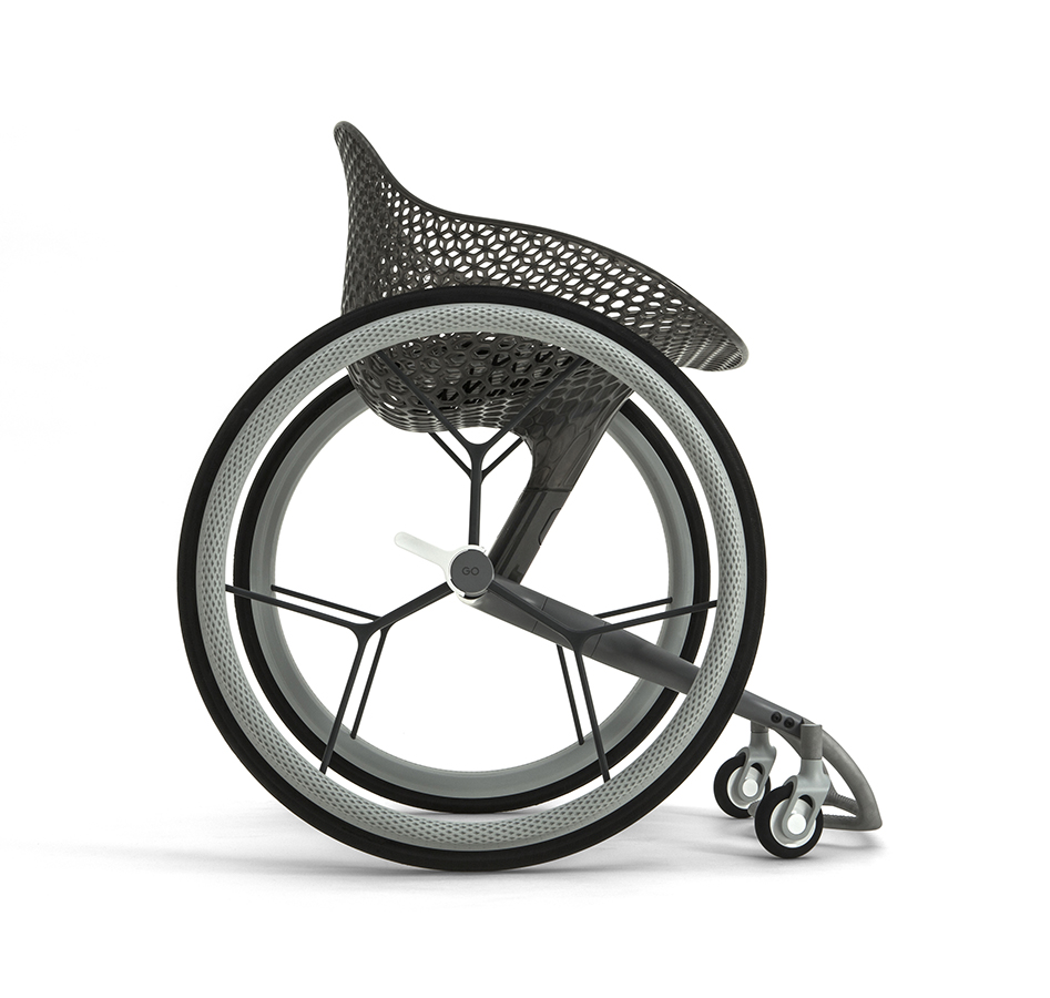 The GO wheelchair is custom-built, lightweight and highly functional. It is designed to meet the individual needs of a wide range of disabilities and users and is a tool for improving quality of life. GO includes two 3D-moulded customized elements, the seat and foot housing, combined with a series of standard components