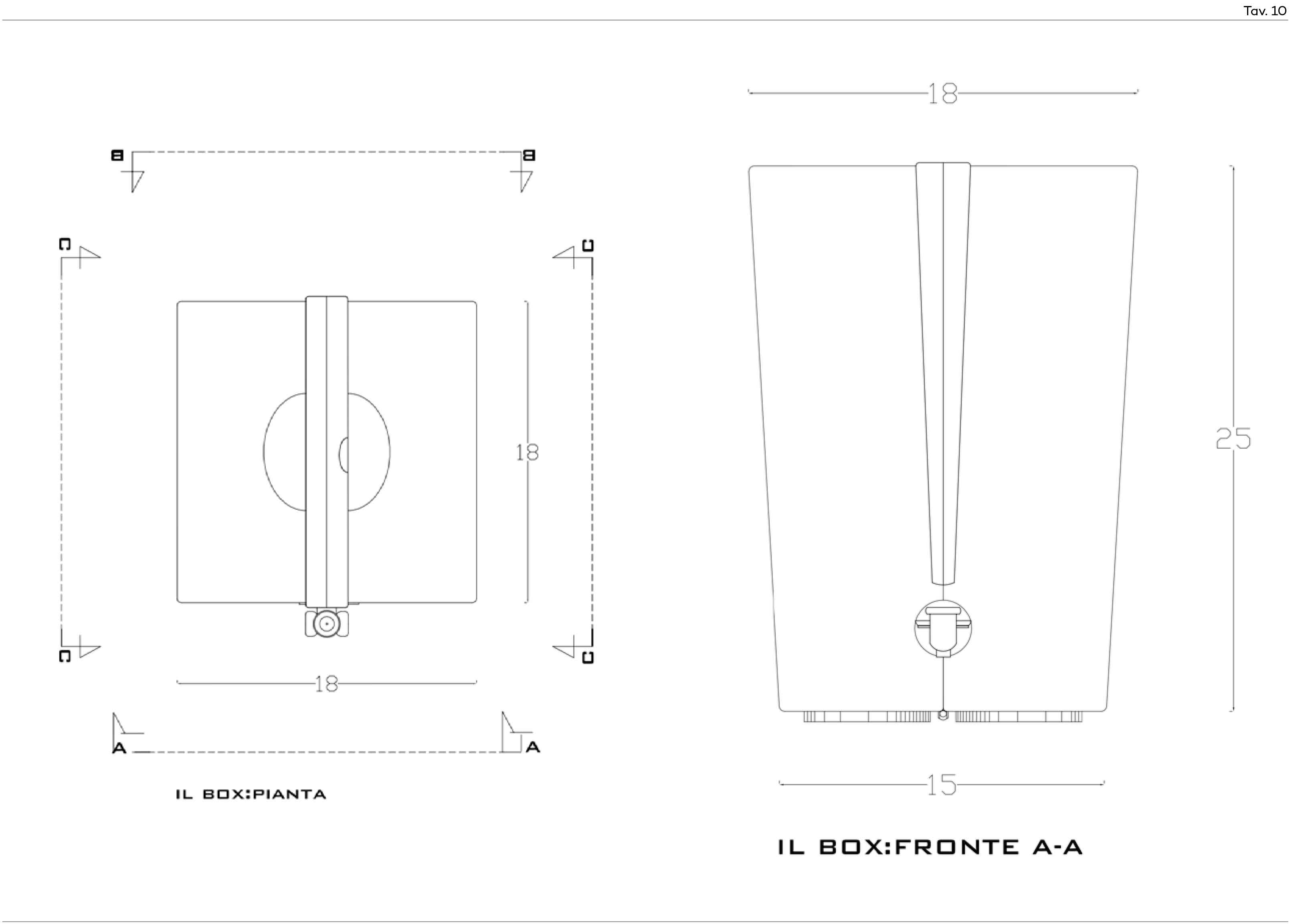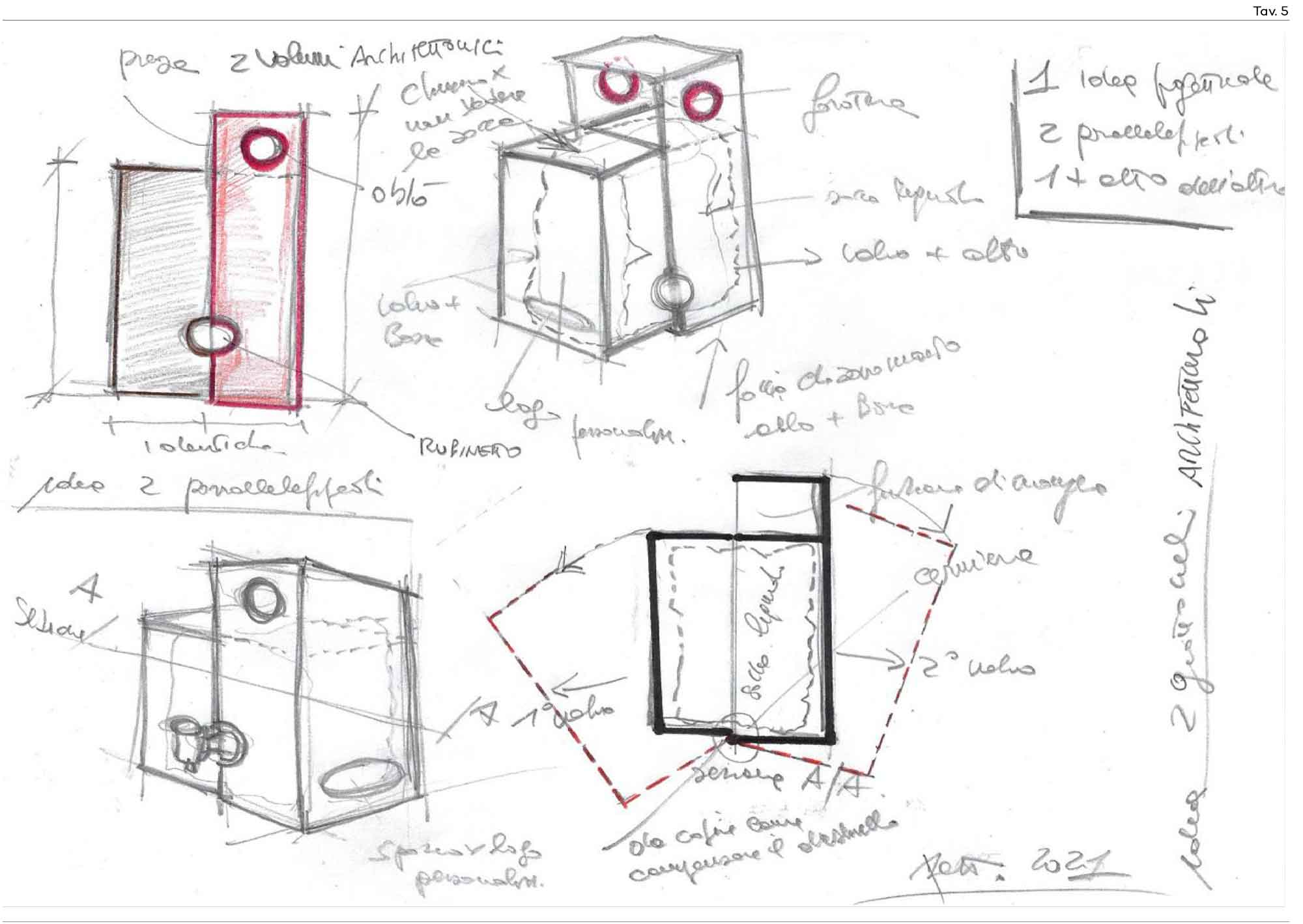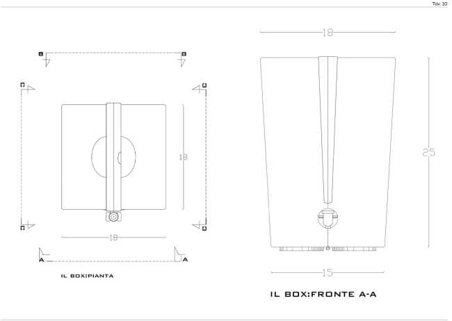 "The box" has an innovative geometric shape, a truncated cone that sets it apart from traditional containers. It is not made of a single piece, but of two valves joined by a pin that allows rotation to insert the liquid bag. The pin is also made of the same material as the valves, simplifying disposal at the end of the product's life, avoiding material separation.
