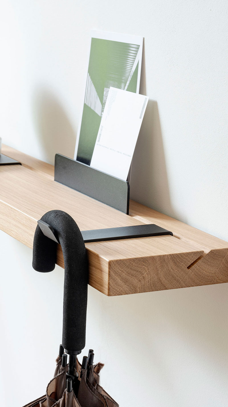 Joseph, designed by the studio crahayjamaigne, is a solid wood shelf designed to seamlessly integrate into any indoor space. Born from a philosophy that combines elegance and functionality, Joseph stands out for its simple and versatile design, perfect for spaces like the living room, entrance, bedroom, or study. Available in various lengths and enriched with numerous aluminum accessories, this shelf represents the ideal solution for design projects that aim to meet the organizational needs of any environment, from home to office.
