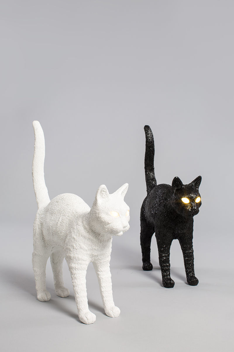 Ironic and provocative, this is the style that Job Studio wanted to create for Seletti's collections. Felix is a cat with intense eyes that illuminates by creating enchanted atmospheres, while Banaba Lamp, is ironic through the use of more democratic and accessible materials.