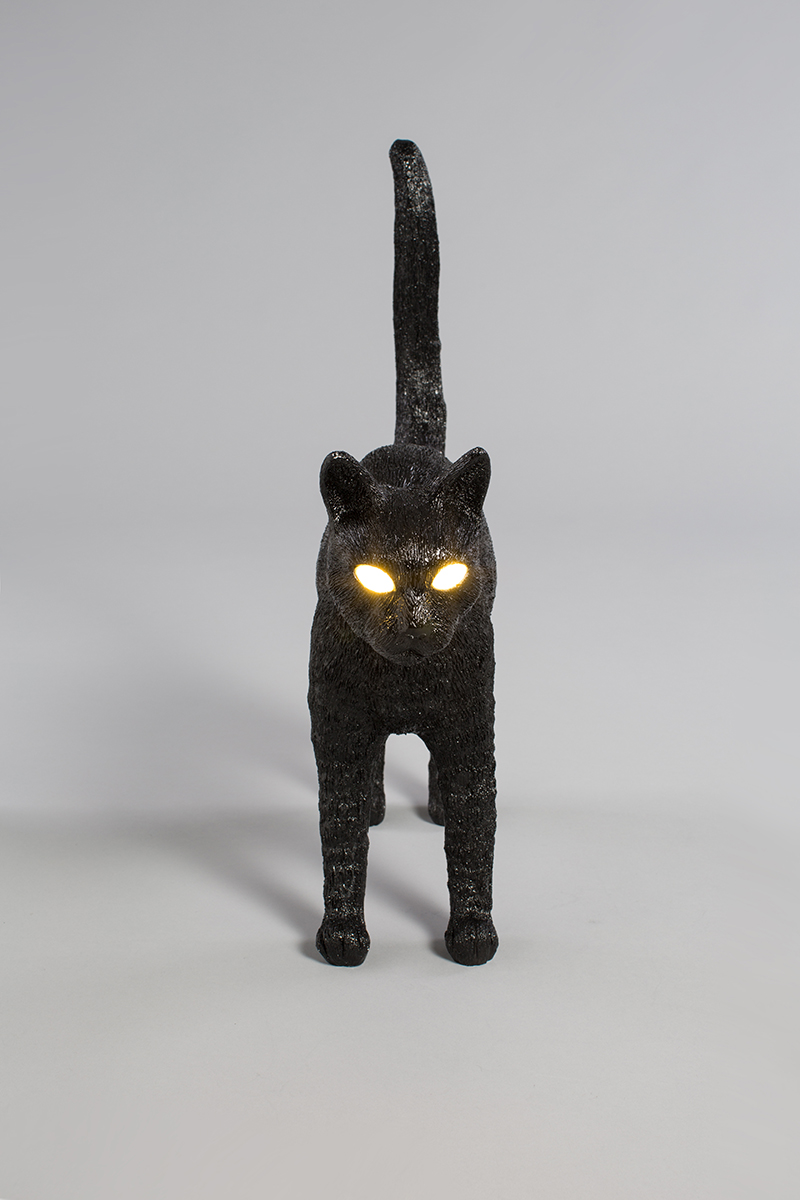 Felix is a magical cat who doesn't purr, but on the other hand his intense and inquisitive eyes light up the rooms creating enchanted atmospheres. Made on a 1:1 scale and inspired by the cat of Job Smeets, one of the members of the studio, it is perfect in every single detail. The alert tail reveals the back where the USB charger and the switches/dimmers that are, poetically, the cat's genitals. Felix is equipped with a lithium battery that lasts for 9 hours, and therefore allows you to move the lamp without problems and the cat's fur perfectly reproduces the texture of the hair, for an even more realistic effect.