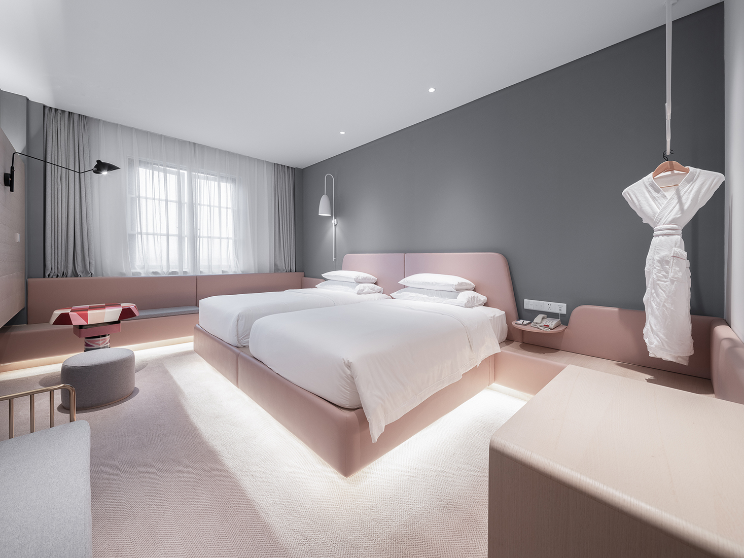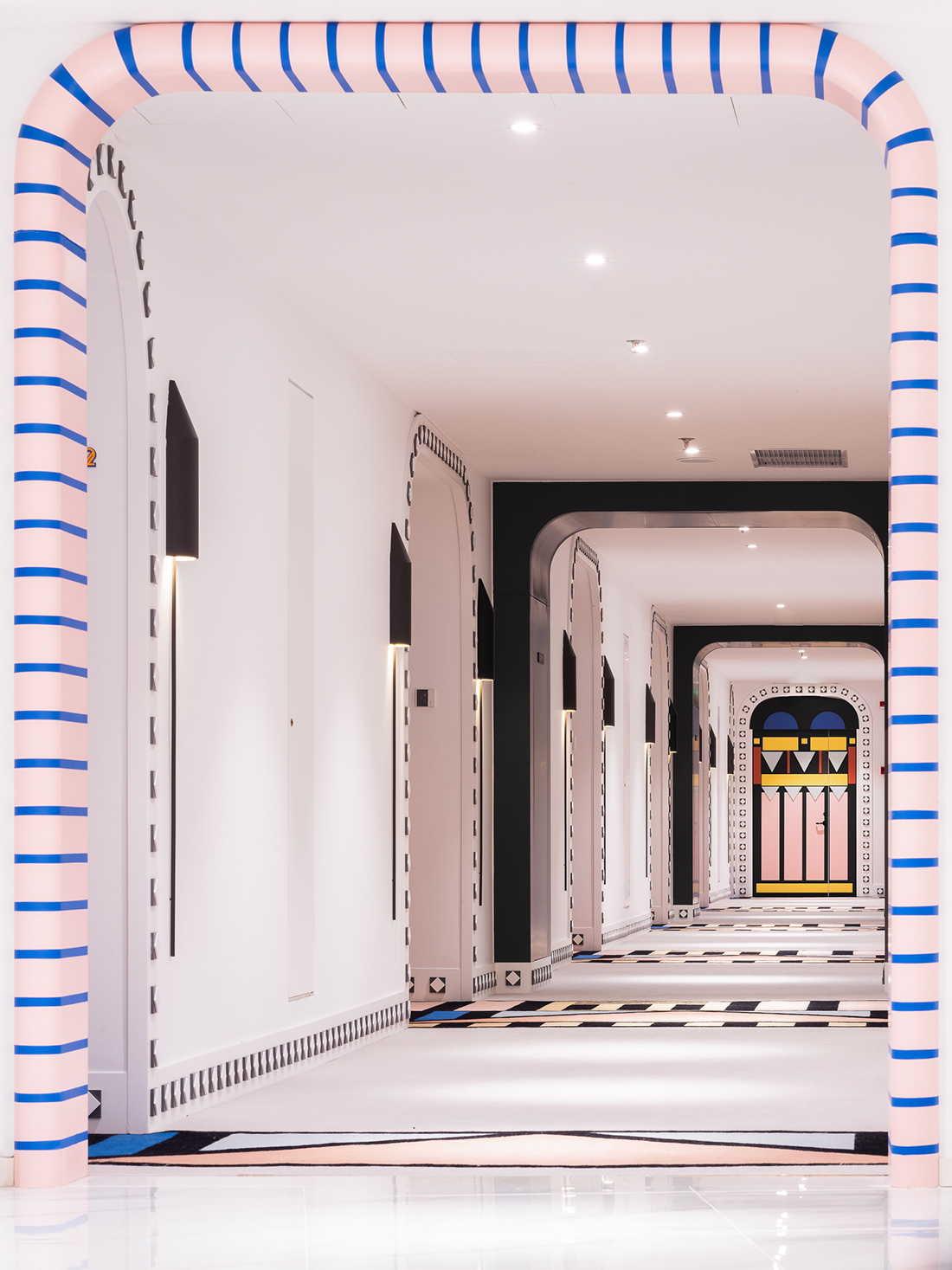 Playful design for a hotel in China. Coloured graphics become the protagonists of the spaces
