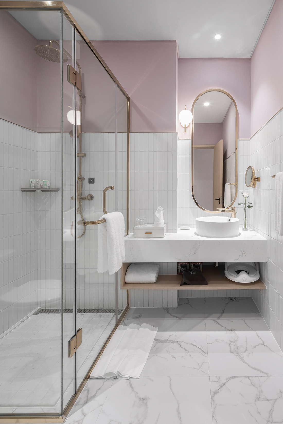 From the lobby area to the guest room area, entertainment facilities gradually decrease, more for noise management and concentration of people. The combination of rainbow graphics and speakers separates different spaces. The bright colours also remind guests that they will enter another space. Public corridors create a sense of paradise with bright colours and geometric figures. The style on the room doors echoes the design of Menphis
