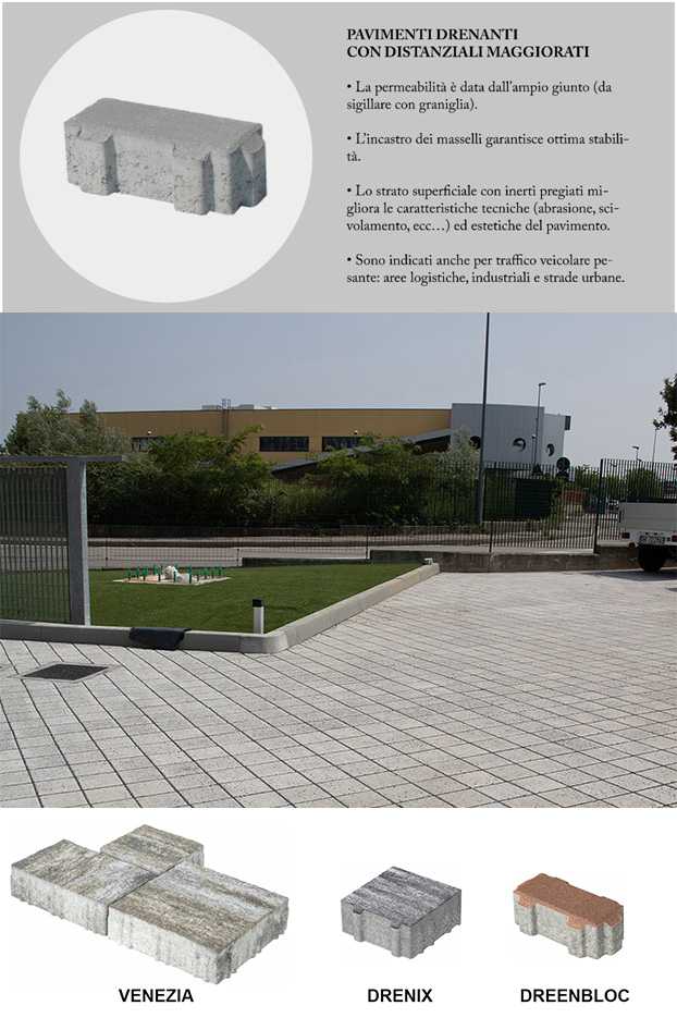 Sono adatti a carichi veicolari medi o pesanti grazie agli specifici distanzialiche creano un deciso incastro tra i masselli adiacenti garantendo la resistenza alle sollecitazioni di carico dinamico.