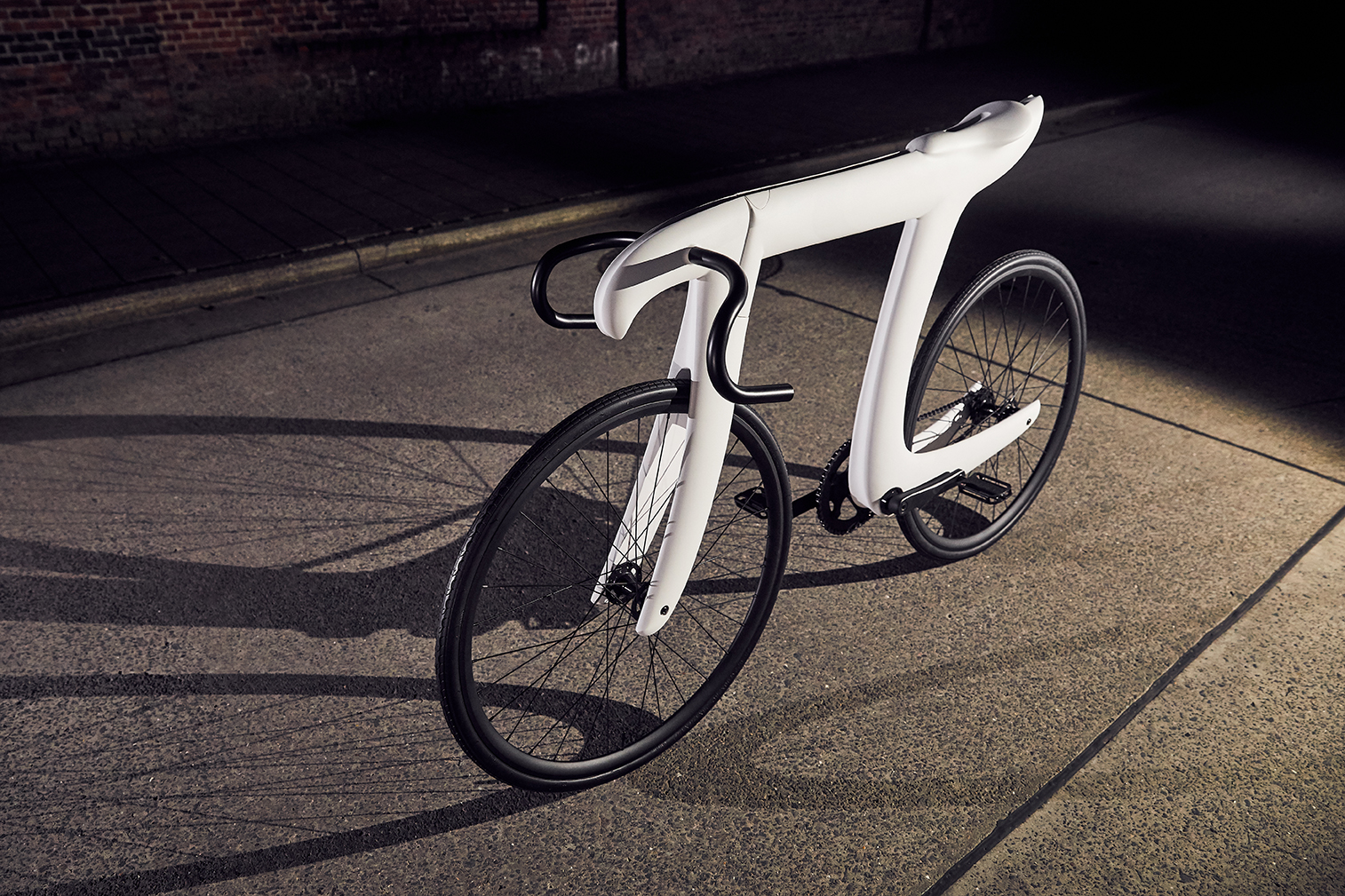 The Pi Bike was designed by Martijn Koomen and Tadas Maksimovas, handmade using carbon fibre material, whose shape reflects the mathematical symbol of Pi Greek (π) and was created to coincide with Pi (Greek) Day and Albert Einstein's birthday.