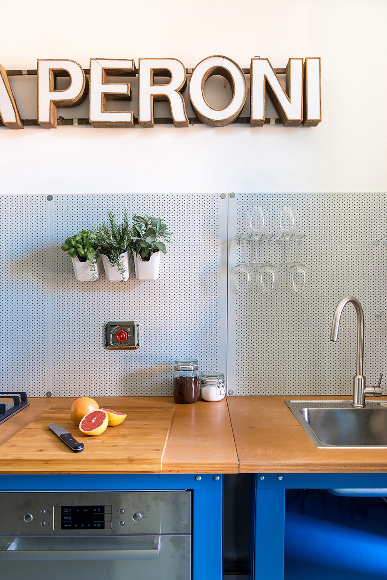 Originally a startup, Very Simple Kitchen produces a system of modular kitchens inspired by the structures of industrial workbenches. The module is made entirely of powder-coated steel and is designed to meet the latest trends in living: a nomadic readyto-use kitchen, capable of adapting to the size of the house and able to expand in the event of moving