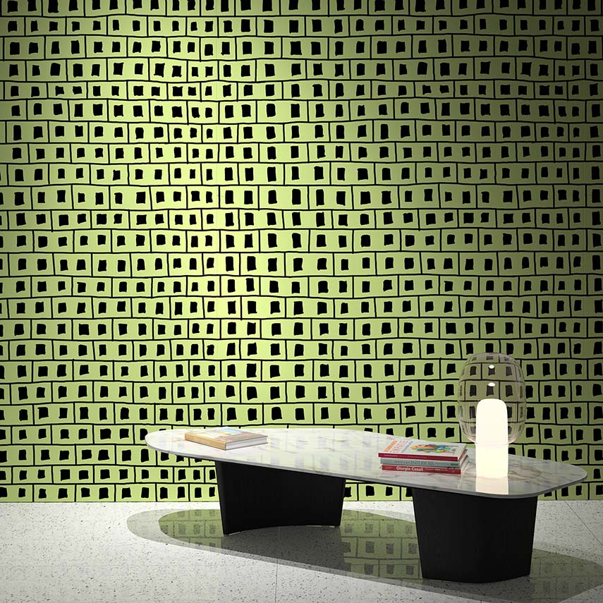 Each panel is 158x244 centimeters, and customizations are possible: each graphic can be personalized according to the specific needs of architects, interior designers, and decorators, by changing the color combination and the pattern itself