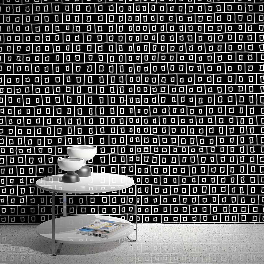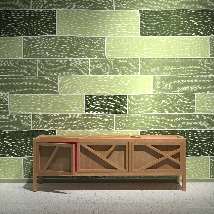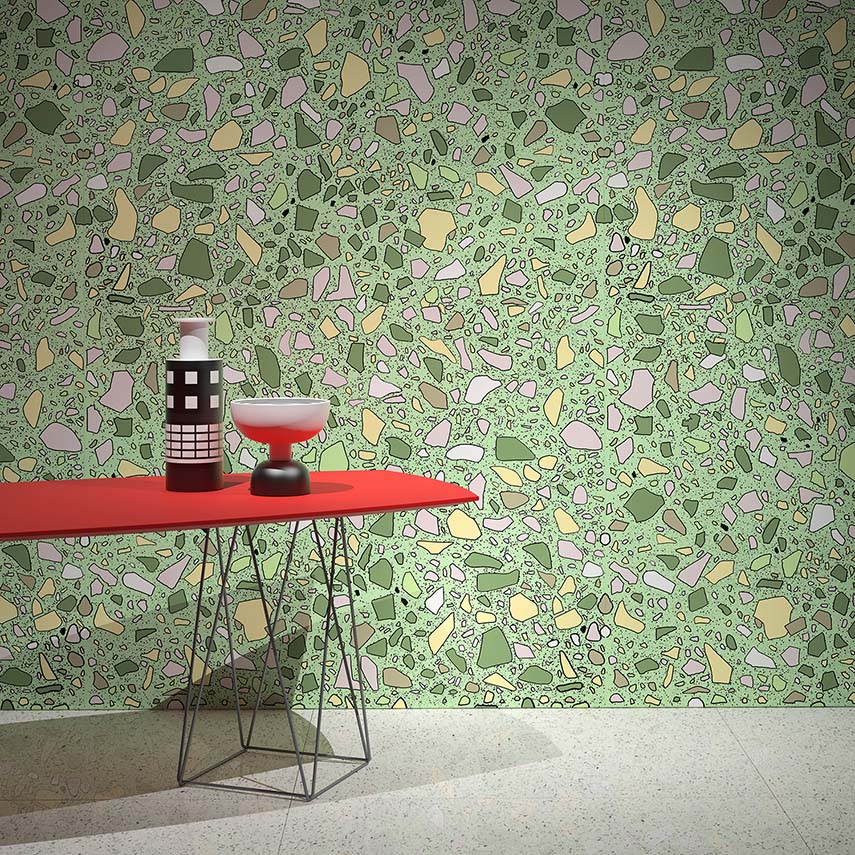 Hand-drawn designs inspired by wooden floors, brick walls, and terrazzo floors make up the new wallpaper collection for Rollout created by Sergio Mannino Studio