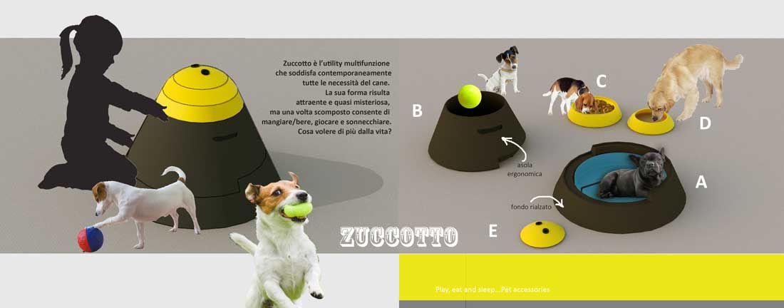 Francesca Di Giannantonio Designer, author of other architecture projects, in her role as a designer, does not forget to put herself in the shoes of those who will benefit from her project Zuccotto: the dogs and their owners. The leitmotif of the collection, in fact, is precisely the gaze: the eyes of the dog and those of the people, in a play of colors and shapes that makes the entire line lively and playful, exploring the dual relationship between dog and person.