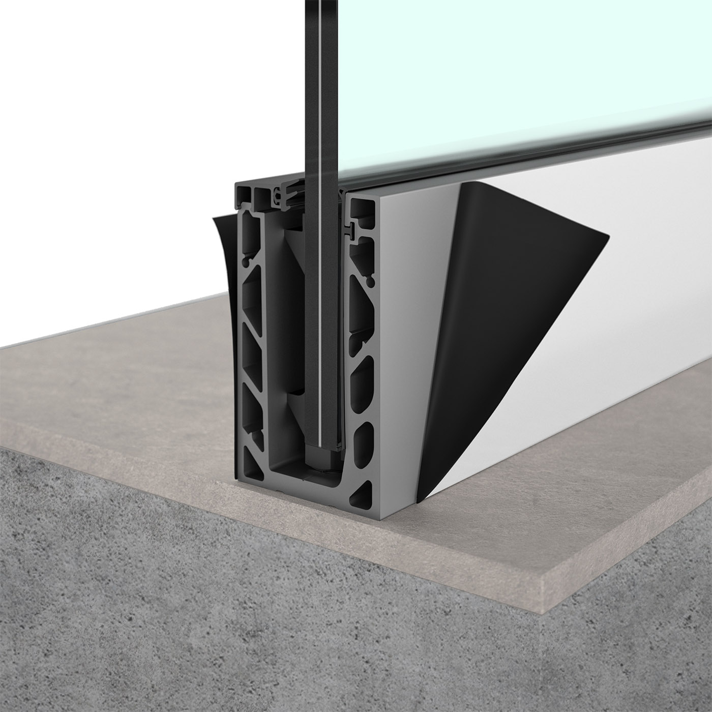 With Garda ONE floor-mounted fixing, it is designed for clamping and adjusting the glass to be done only from the inside. The profile is supplied protected by a scratch-resistant film, to be removed when the construction site is completed.