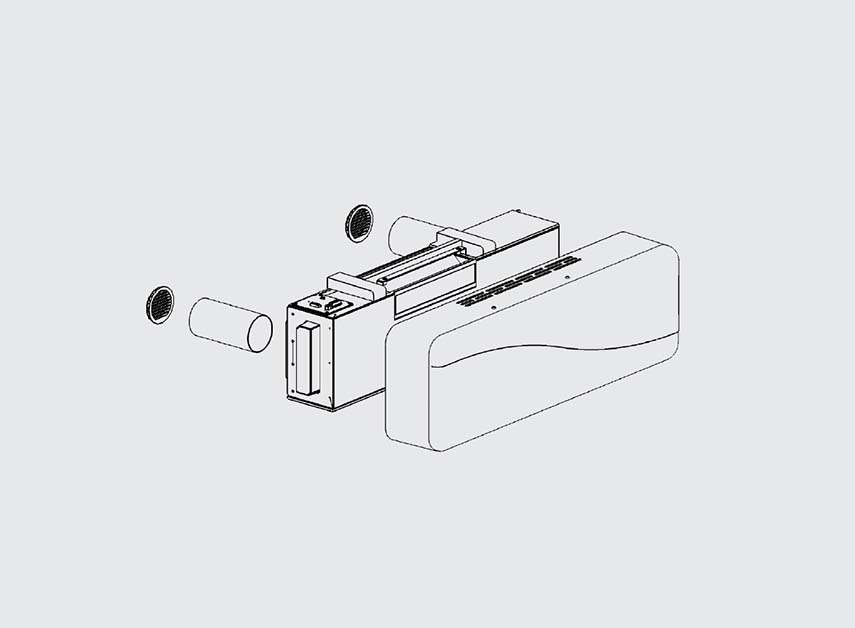 Installable on the wall without invasive interventions, it offers modulable air flows from 15 to 120 m3/h and stands out for its ease of installation thanks to two 100 mm core drillings.