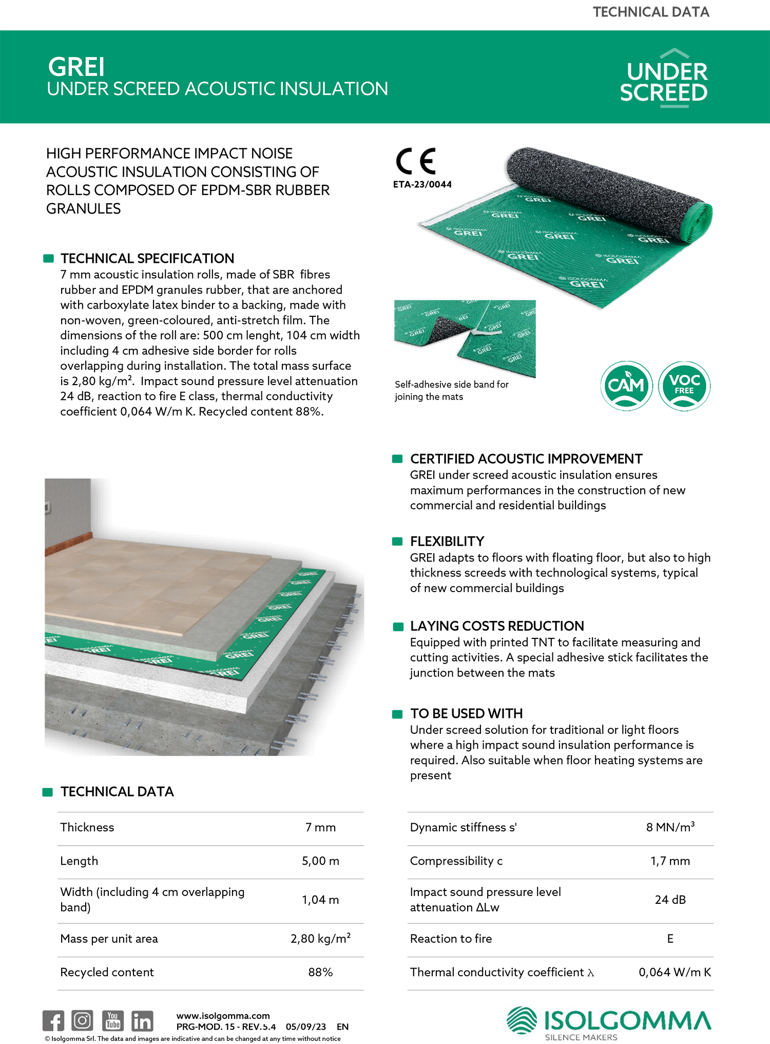 High sound insulation despite the minimal thickness, extreme moisture resistance combined with ease and speed of installation are the main characteristics of the Grei insulating roll.