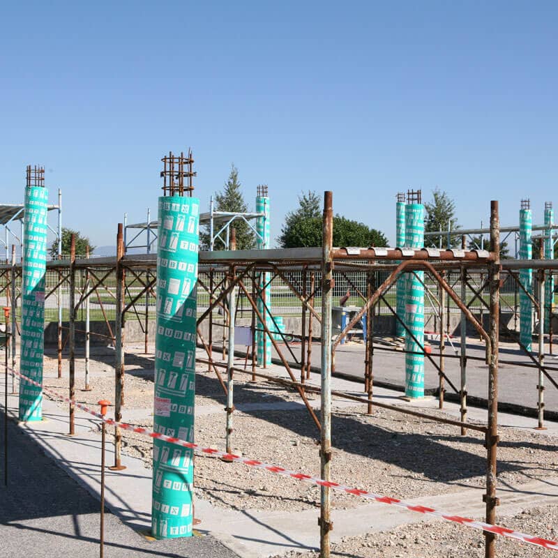 Two layers make up the formwork for Tubix-T columns: the outer one in cardboard, which ensures resistance to the hydrostatic pressure of the concrete pour, and the inner one in ESP, which allows obtaining the desired geometric shape.