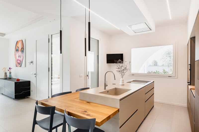 Villa L2A is an extraordinary example of minimalism and essentiality in geometric shapes. The architect Davide Beretta, author of numerous architecture projects of great relevance, has skillfully organized the spaces of the villa, creating a harmonious coexistence between refined aesthetics and perceived comfort. The villa in Crema was designed with particular attention to aesthetic rendering, which is manifested through the use of white finishes, which emphasize and enhance the geometric shapes. The sequence of straight and curved lines defines the volumes, which interact with each other in a fascinating interlocking game, creating a harmonious and visually appealing whole. Every detail has been carefully studied to ensure a perfect balance between functionality and beauty, offering the villa's inhabitants a unique and comfortable living experience.