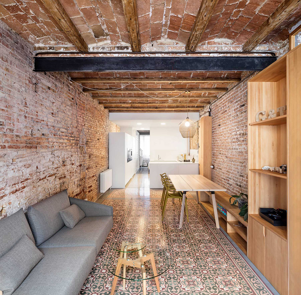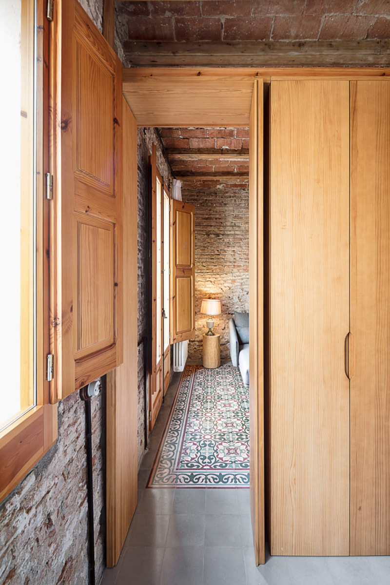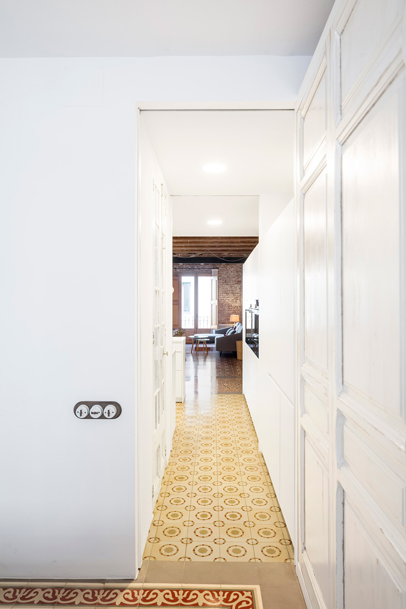Located on the top of five floors, the apartment of about 70 square metres was badly arranged and in poor condition. The Carles Enrich Studio renovates the interior spaces, giving life to concatenated and bright spaces, with a careful design