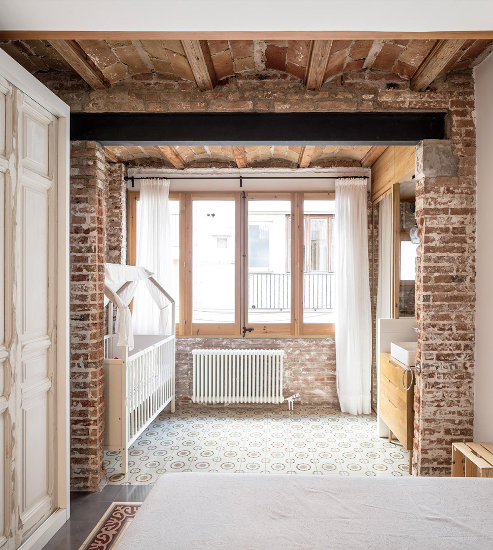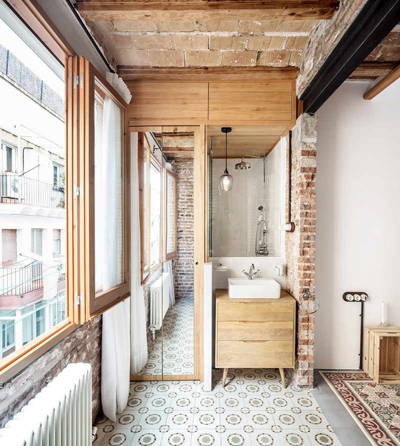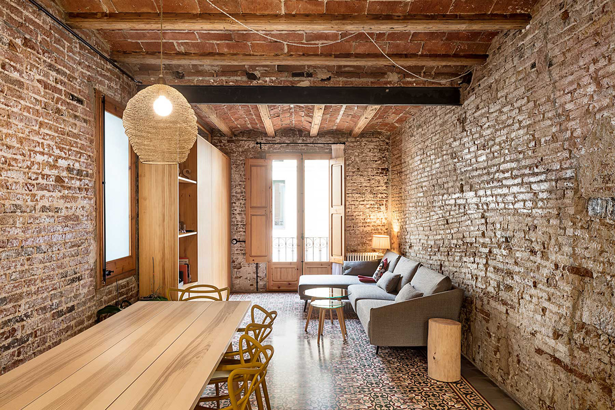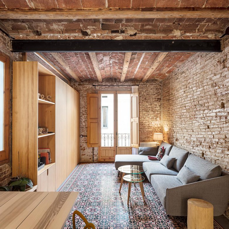 Located on the top of five floors, the apartment of about 70 square metres was badly arranged and in poor condition. The Carles Enrich Studio renovates the interior spaces, giving life to concatenated and bright spaces, with a careful design