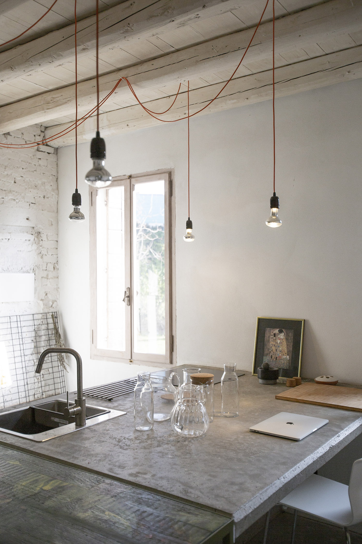 Both residences maintain a brutalist character: they are emptied, keeping the structure bare, and two double-height rooms are obtained. The designers design some details such as the iron lamps, the concrete kitchen, with the intention of keeping alive the sobriety and simplicity of the original building, while giving it new freedom