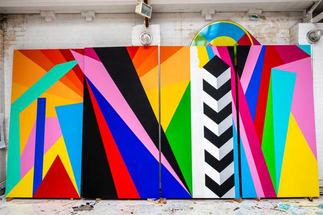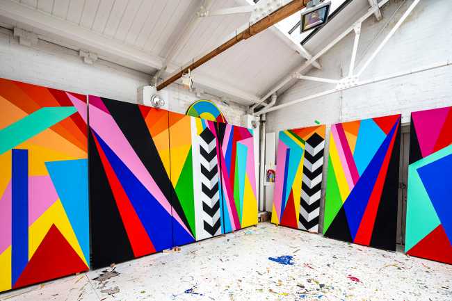 Artist Morag Myerscough's communicative joy encourages the construction of an "after" the Covid crisis, stimulating the imagination through a colourful work that rises 8 metres high, in a poetic and popular way