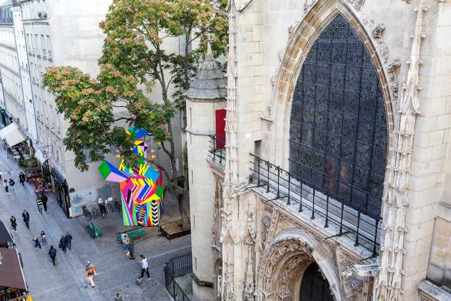 The project was erected on a large pedestal in an abandoned square in the heart of the city, next to the Pompidou Centre and Saint-Merry, a 16th century church called 'Petite Notre-Dame'