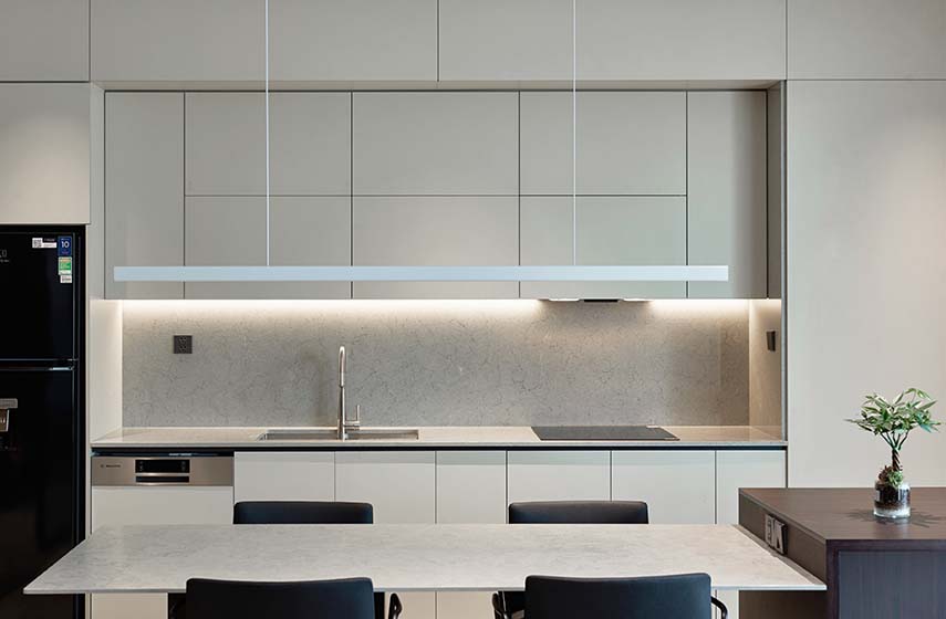 Among the various interior design projects by FLAT6 Architects studio, we find the one for the transformation of an old, dilapidated dwelling, with narrow and dark spaces, into the balanced and airy A1208PP apartment. The new owner requested from the professionals a spacious and welcoming residence, equipped with a single bedroom, a home-office, and a sacred space for a private altar dedicated to worship rituals. This last feature is not common for Vietnamese homes, but religious families always request it