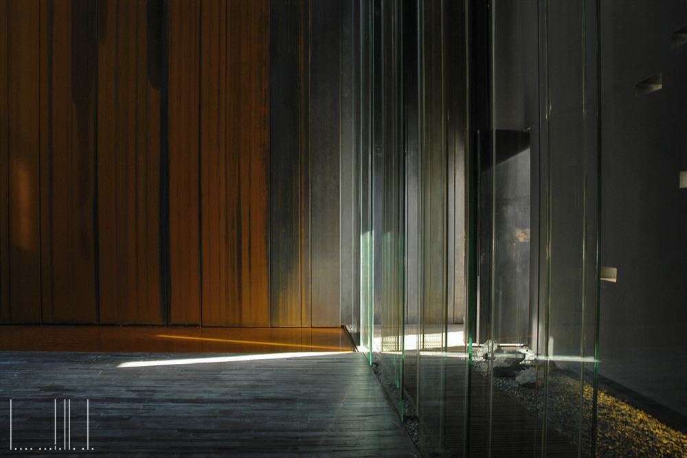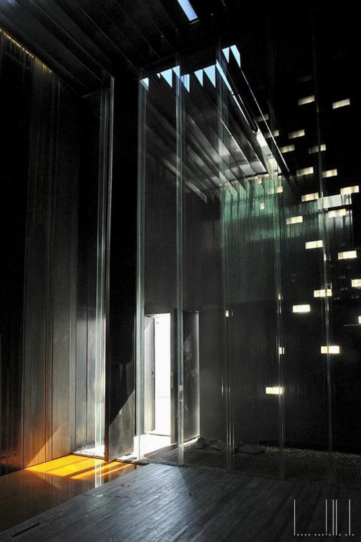 Inside, diaphanous spaces separated by glass surfaces that play with light, reflections and immateriality.