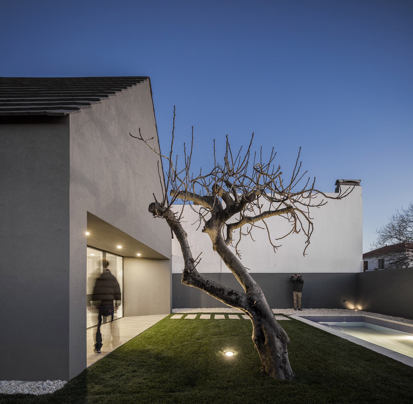 A series of terraces that combine different dimensions, simple but very impressive forms, unexpected finishes and essential white interiors make up Casa Amélia in its new look, while maintaining the focus on its roots: the old fig tree, which marks the boundary of the property and invites us towards the new swimming pool, and the local church that peeps out in the different window frames