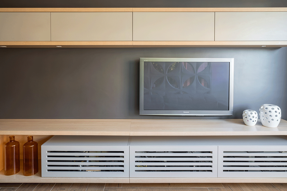 The clients' greatest desire was to live in a large, contemporary, barrier-free space. For this reason, the starting point was to open the kitchen onto the living room, creating a space that would play a central and social role within the home