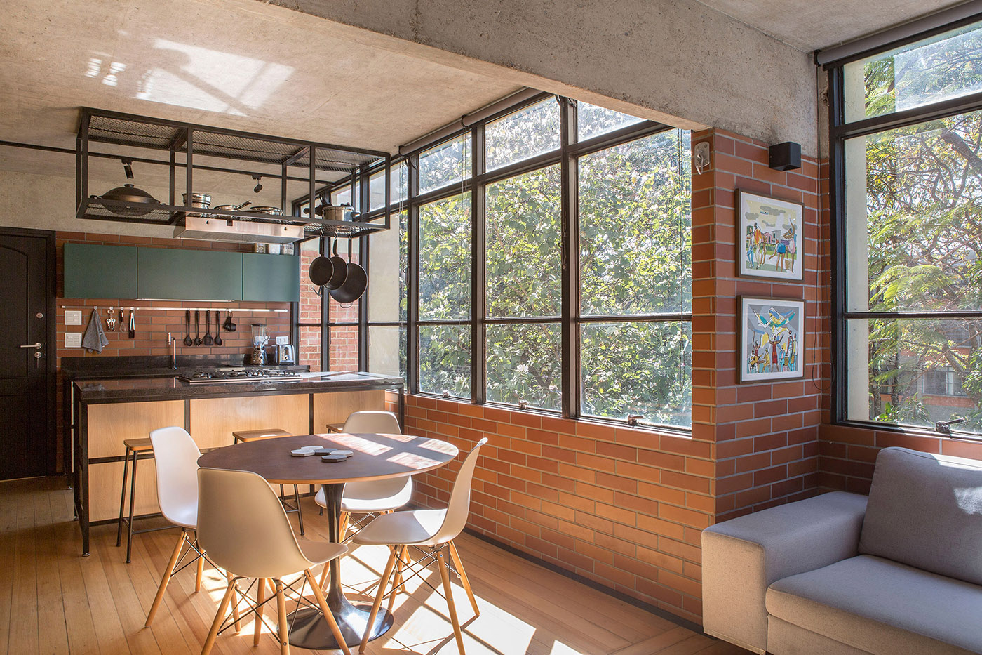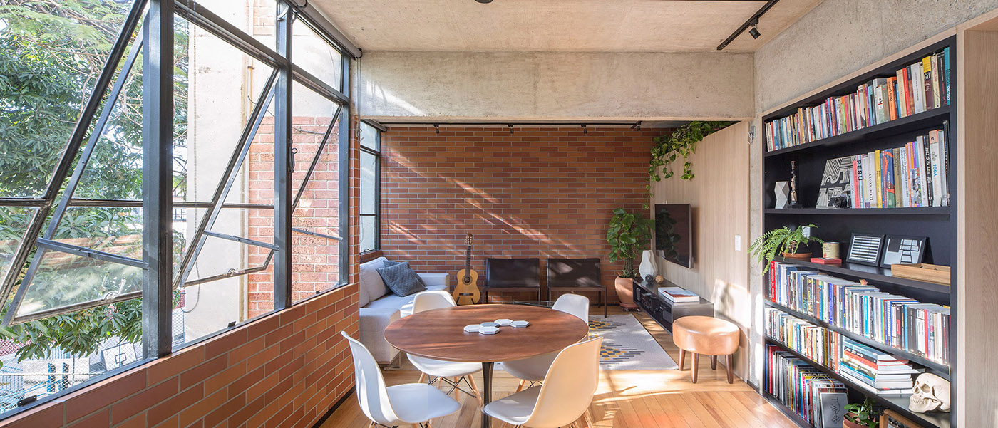 CoDAarquitetos, Brazilian studio renovates a small apartment in a residential complex dating back to the '60s in one of the oldest neighbourhoods of Brasilia, AsaNorte, a project characterized by the use of red ceramics