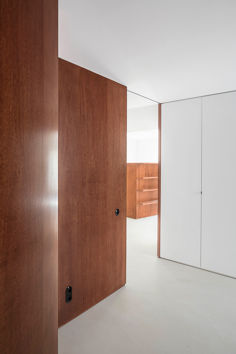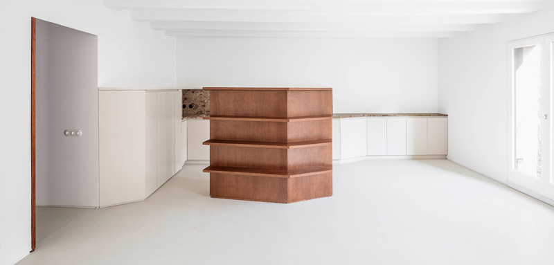 The renovation of the apartment in Barcelona, in Parlament Street by h3o architects consisted of creating a spatial continuity through the use of white colour in order to make the space become a white canvas, defined only by the furniture.