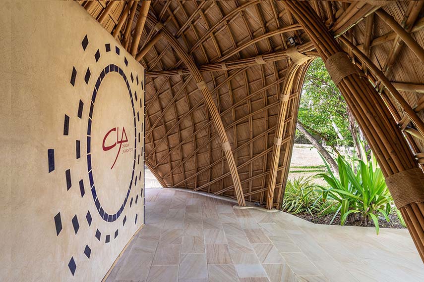 Following the curve of the natural pond, the architecture studio on water's edge is the home of creativity for Chiangmai Life Architects. One of the studio's architectural projects that embodies the principles pursued by the professionals who work there: innovation, user well-being, craftsmanship, and use of natural materials. The building houses two open spaces with various workstations, a meeting room, and two bathrooms