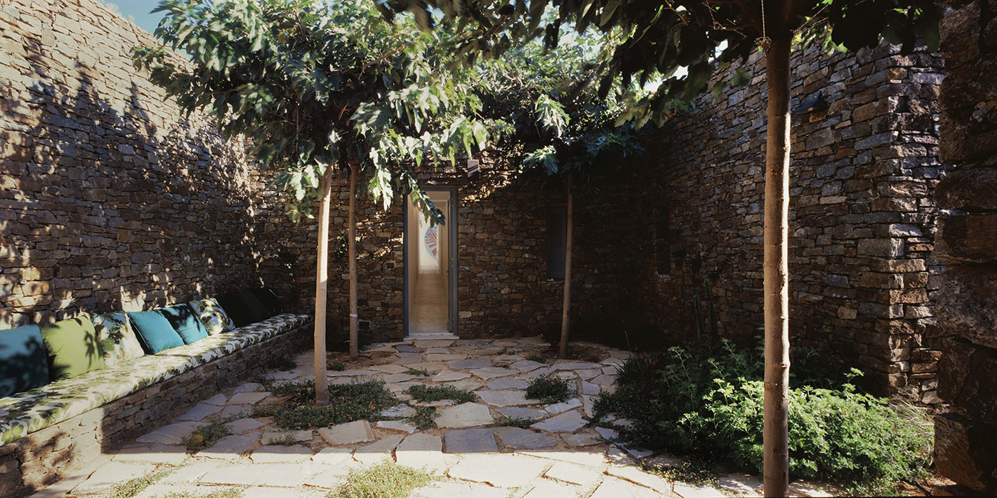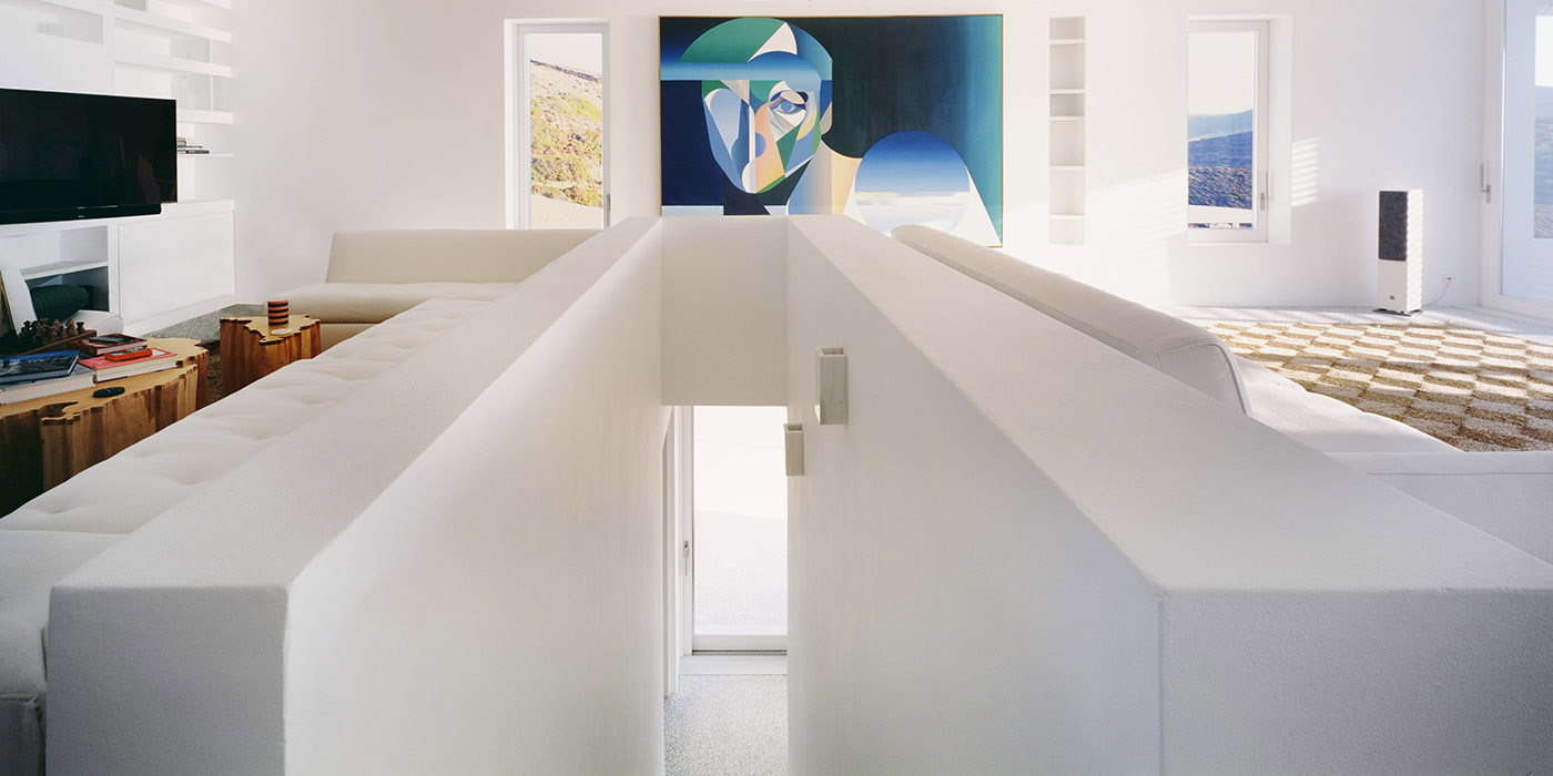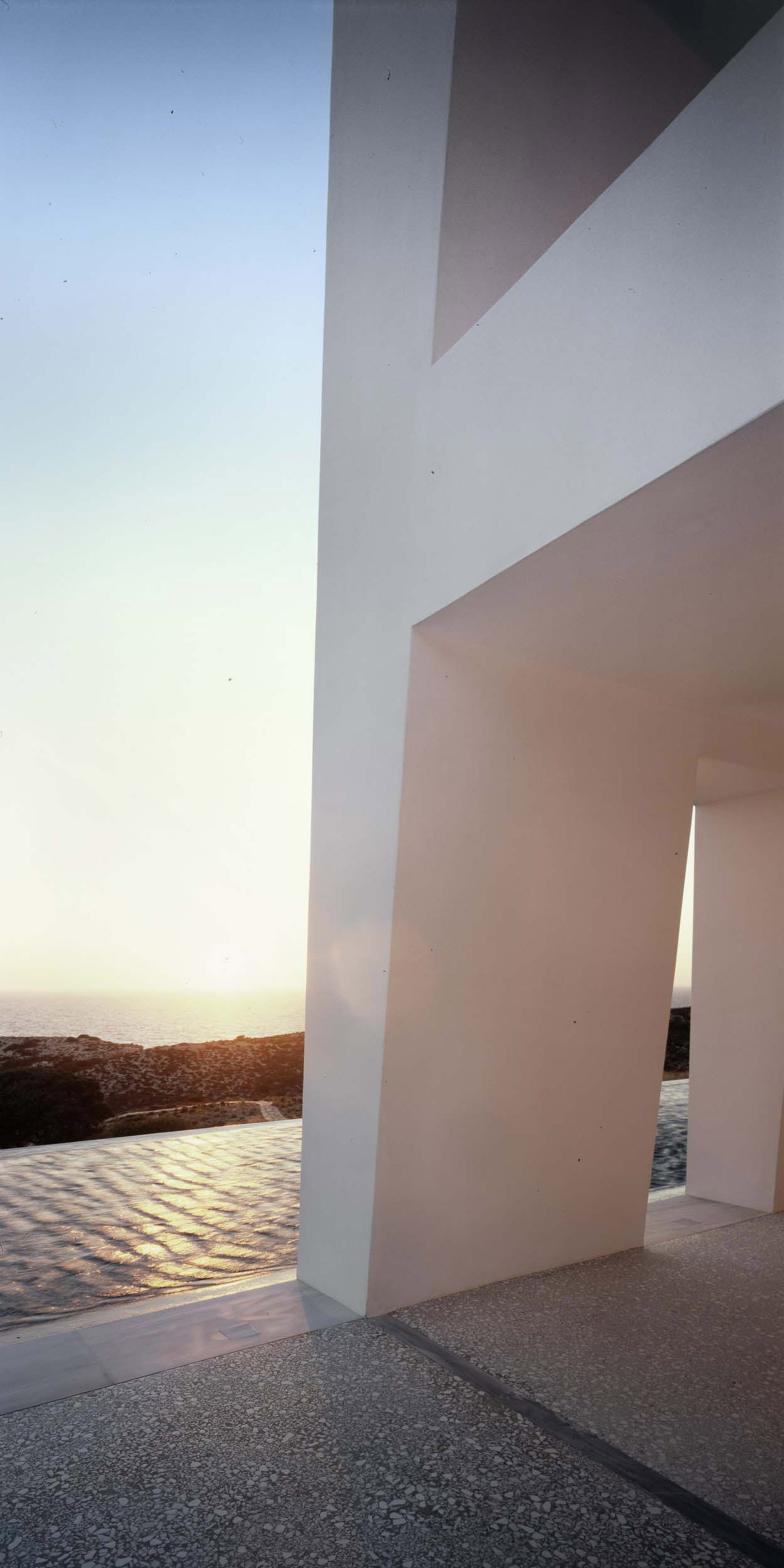 Taking its name from the Greek term indicating the rocky cliffs on which it stands, Avlakia House, designed by the studio ARP - Architecture Research Practice which carries out architecture projects mainly in Greece, emerges from the landscape in the form of a local stone retaining wall, stunning the view with the monumental temple-like presence of the white volume resting on it.