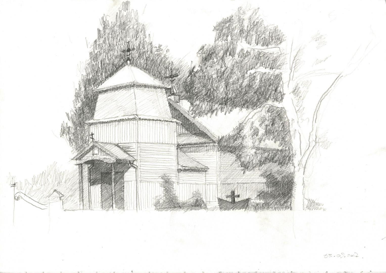 The chapel was designed by Spheron Architects, an emerging London-based architecture studio, after careful research into the tradition of the wooden church in Belarus through studies of the existing, traditional churches, including buildings in villages that had been abandoned since the Chernobyl disaster thirty years ago