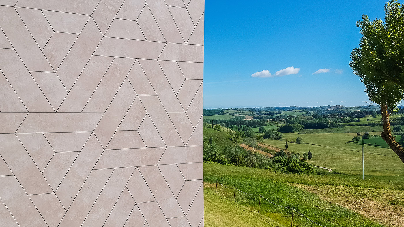 Library of Peccioli. Geometric porcelain stoneware cladding for expansion