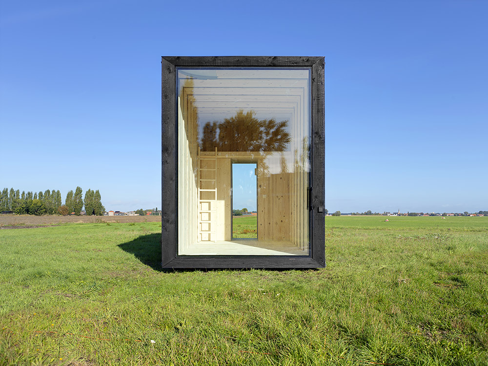 Cabin Y is composed of a volume that covers 6 meters in length and 2.4 in width, for a height of 3.4 meters, thus being easily transportable. The construction principle consists of ten wooden porches connected by X-shaped stainless steel tension cables
