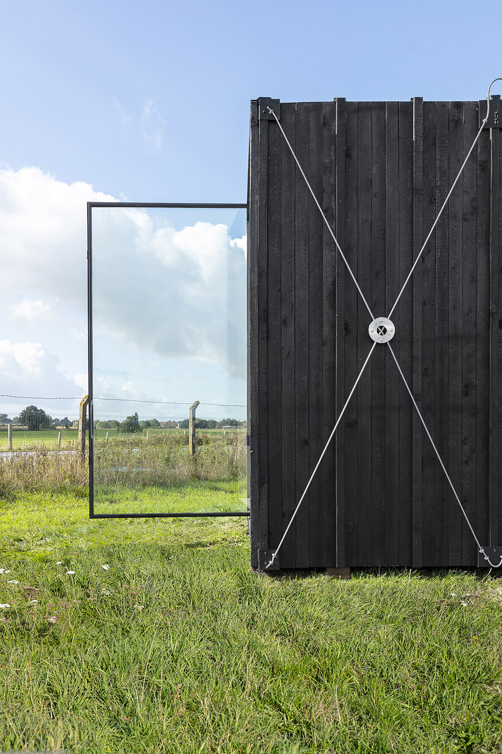 The Belgian studio dmvA architecten designs "Cabin Y", a sustainable, economical and self-sufficient mobile home, made of white oiled pine wood in the interior and burnt larch wood in the exterior cladding