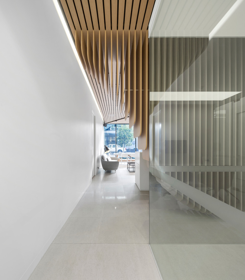 Interior design for the Dental Clinic in Sydney. The wooden element combines aesthetics and functionality