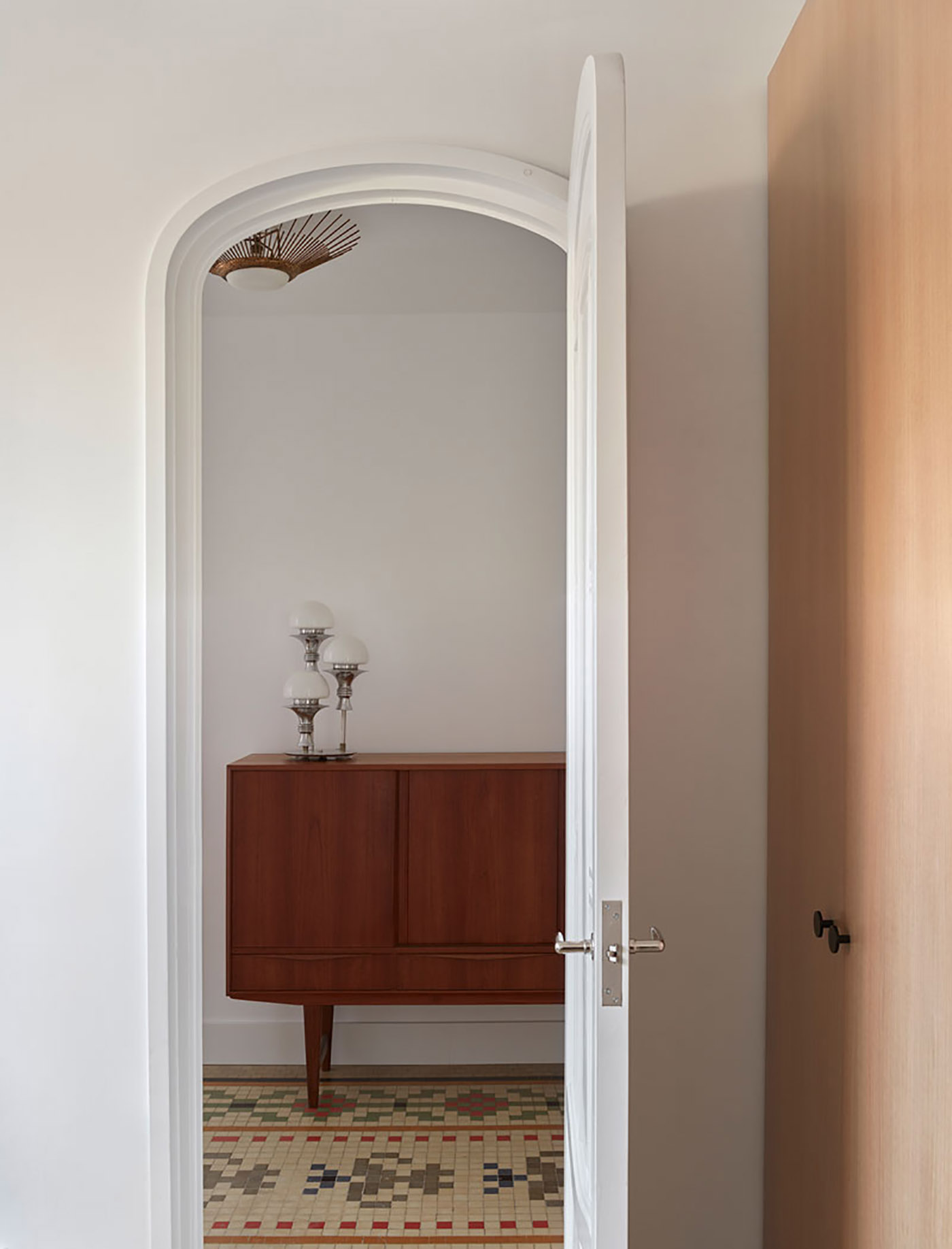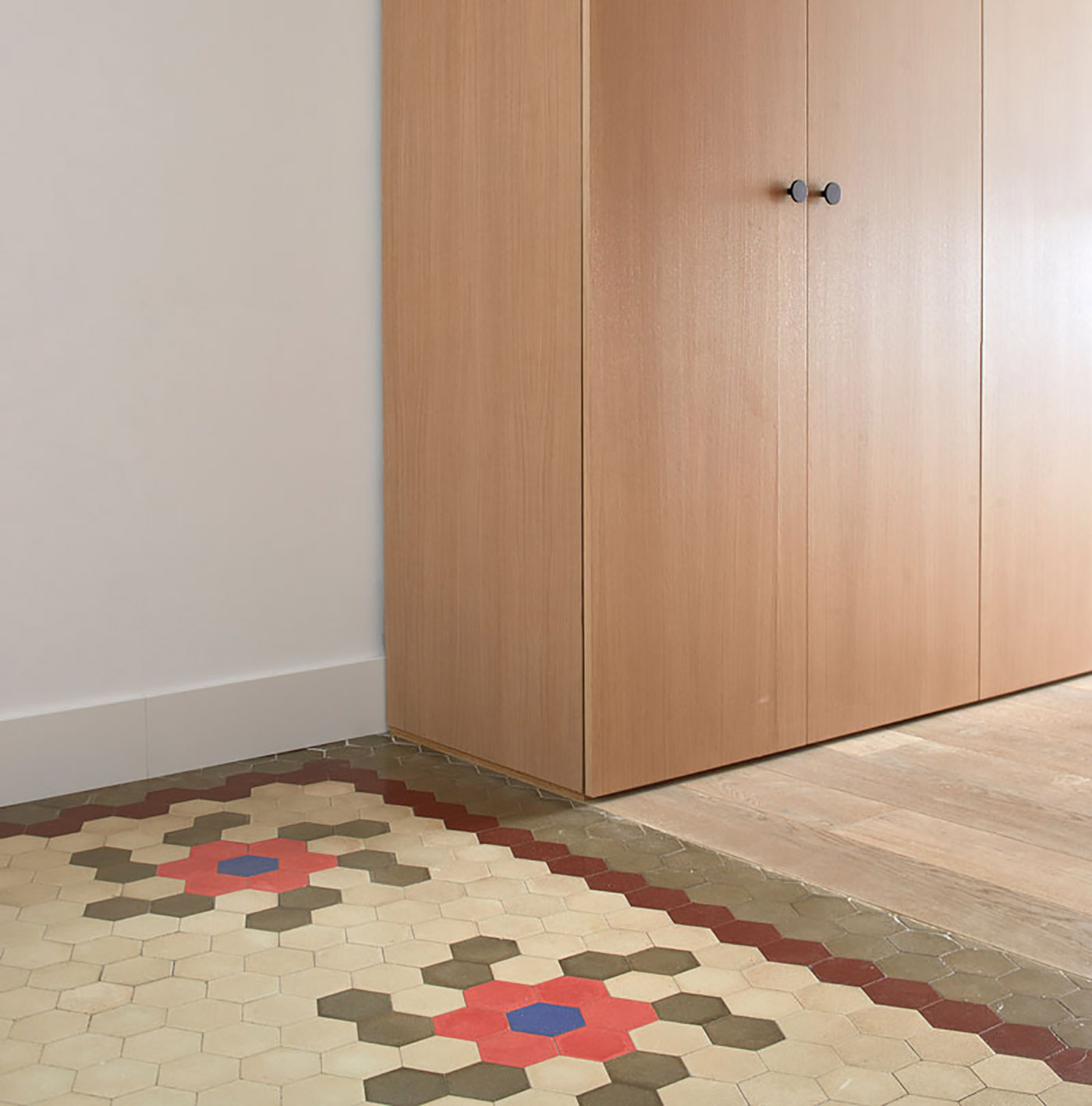 For the renovation of Casa Cas 8, minimal changes were made to the layout to preserve the entire original flooring of the house and the ceilings with mouldings.