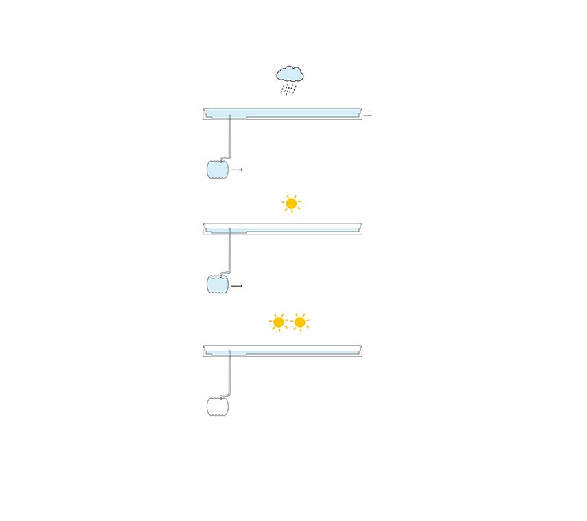 For the service residence in the Villa Park, the Casabella magazine in 2014 promotes an architecture project competition. Angelo Renna, architect and landscape designer, proposes his idea: an 80 square meter living module consisting of a monolith in the shape of a rectangular parallelepiped with rounded short sides, featuring a rainwater collection tank as its roof