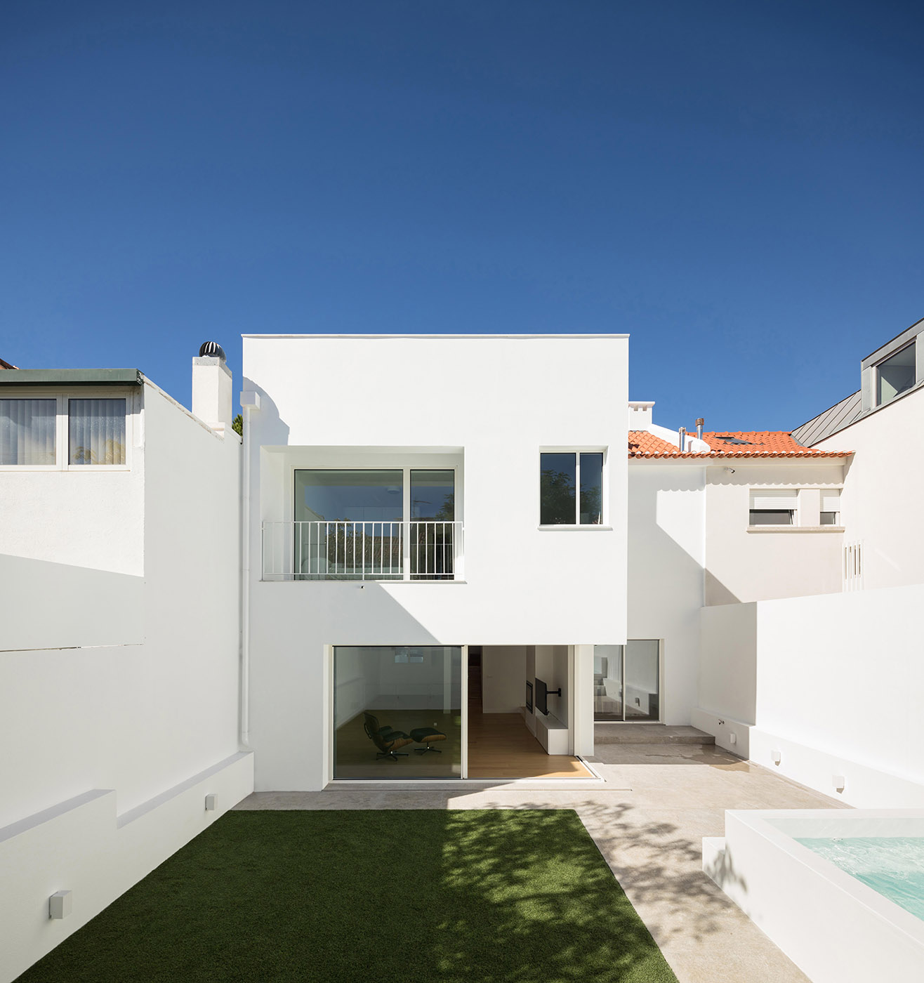 The two-story house located in the Restelo neighborhood of Lisbon was in dilapidated condition and had a garden and a courtyard. The architecture studio atelier cais managed to exploit the potential of the house and improve its spatiality