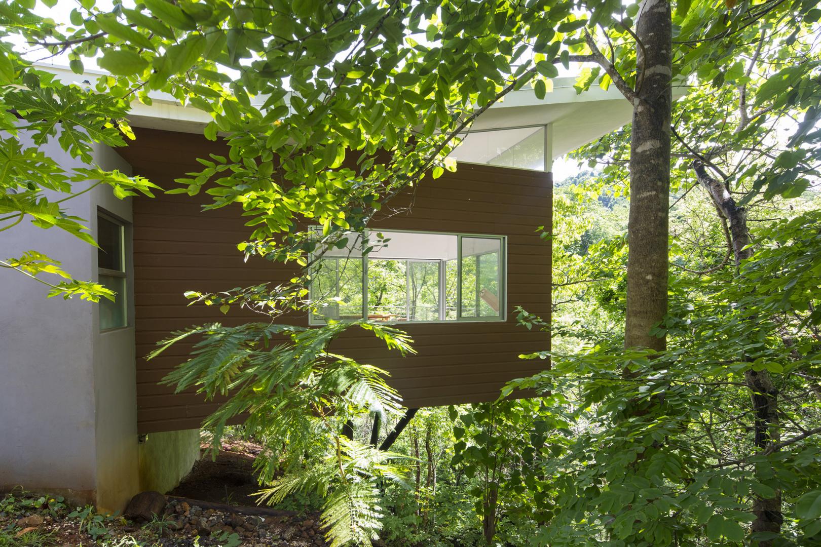 Located in a mountain surrounded by topographical troughs, a shallow river which is very close to the northern Pacific coast of Costa Rica, the house is slightly detached and seems to fly over the ground