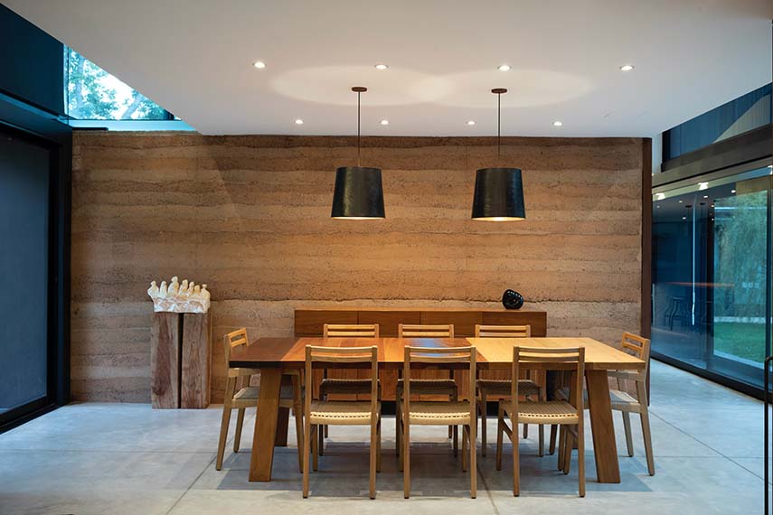 Casa L&J is one of the residential architecture projects by the Mexican studio of Alvaro Moragrega. Located near a golf course, the villa, with its main volume in glass and steel, the sloping roof covered with black flat tiles, creates a filter and protection for the tranquility of its inhabitants. Inside, the distribution of spaces follows the elongated shape with progressive levels of intimacy