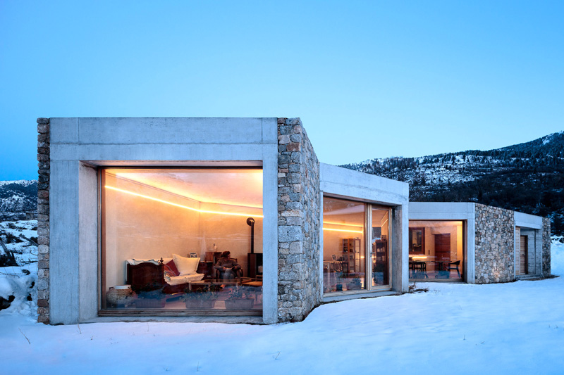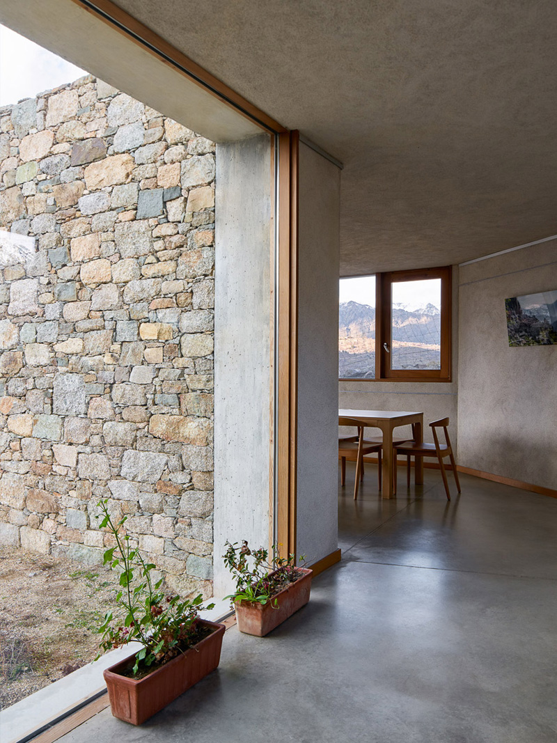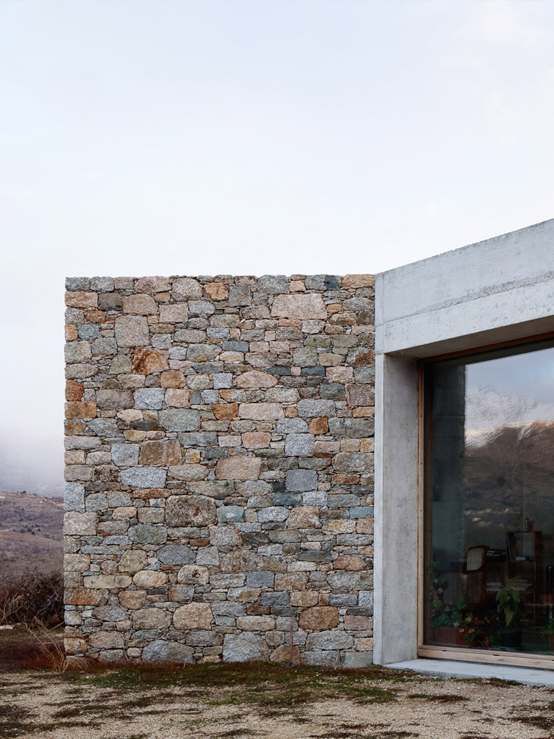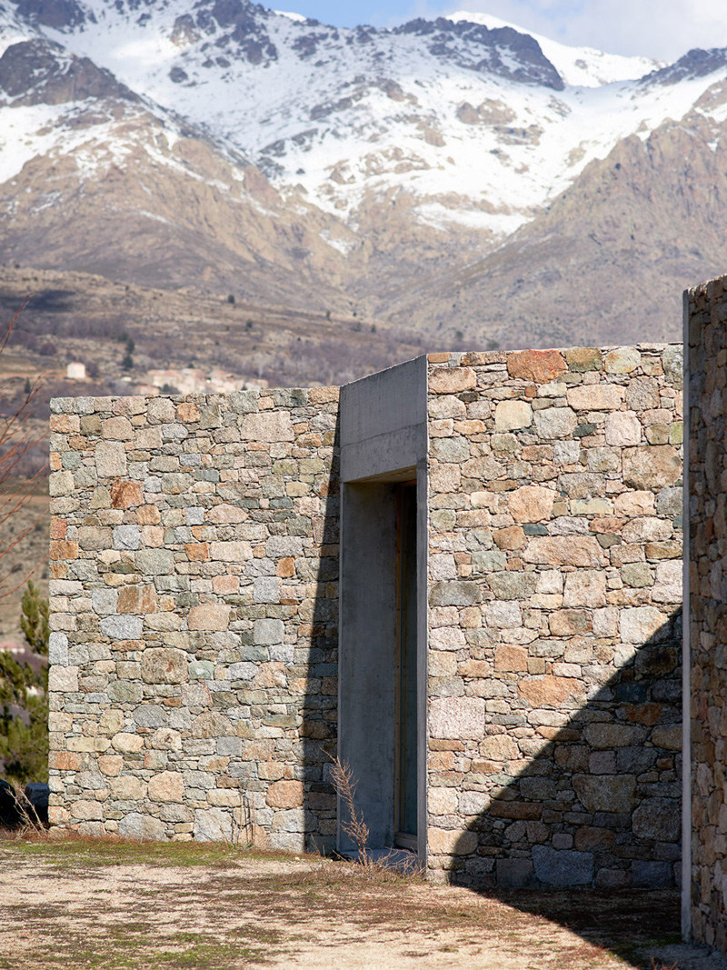 The building becomes completely part of the landscape, a place of contemplation, where natural light enhances the spaces. The light of the sunset every evening in particular makes these spaces unique. Based on this landscape, the project is characterized by an interior-exterior duality. The stone wall is opened to leave space for the view and the light